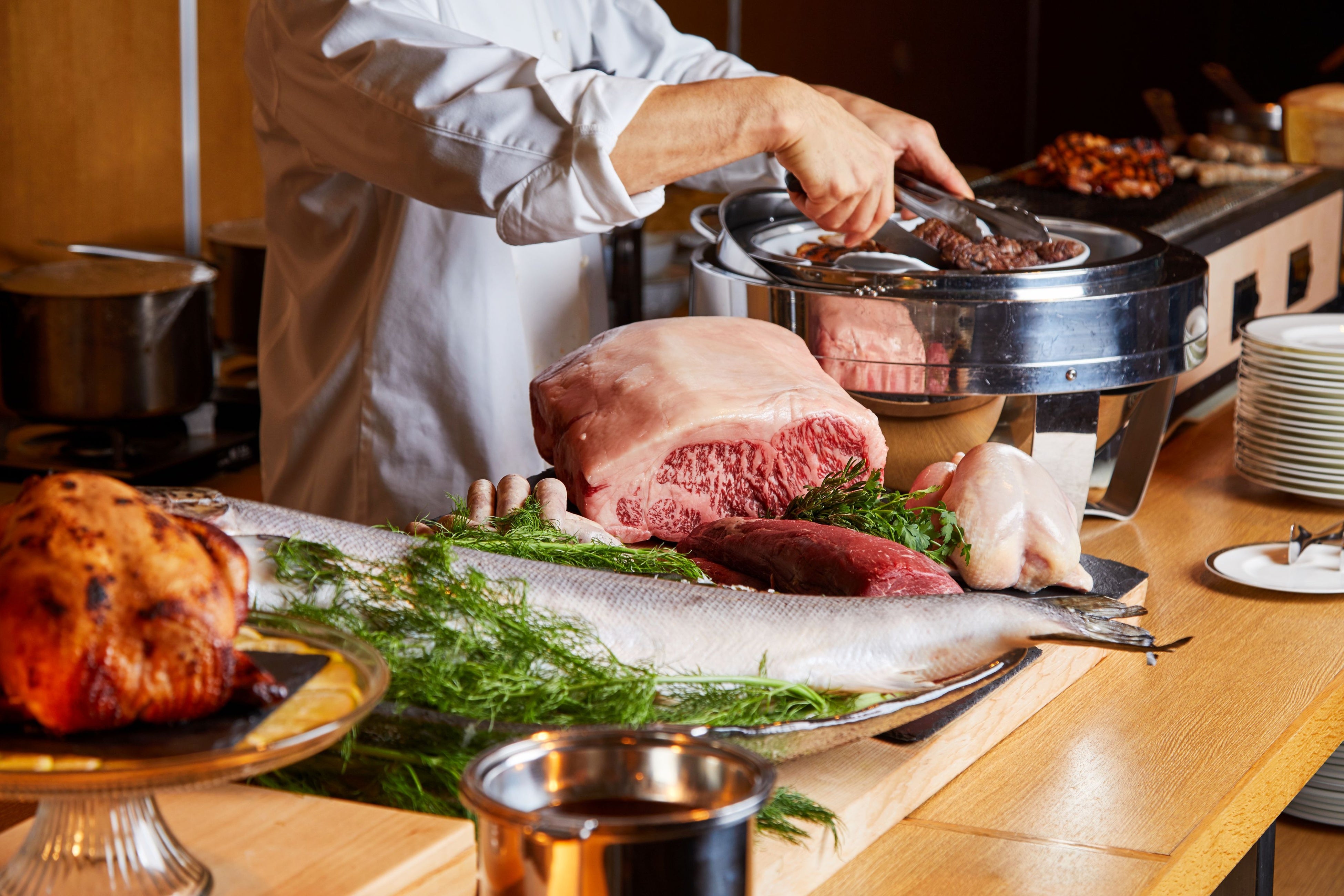 本イベントでは、バンケットチームに加え、館内のオールデイダイニング・カフェ33、トラットリア セッテ、日本料理・東山とペストリーチームのシェフが一堂に会し、特別なお料理やスイーツをご用意。創業当時のメニューを再構築した料理や、各レストランのシグネチャーディッシュをライブ感あふれる「キッチンスタジアム」形式でご提供します。また、料理に合わせたワイン、日本酒など各種ドリンクもお楽しみいただけます。