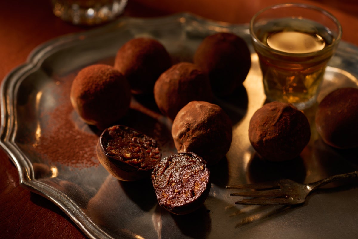 2種の名酒が織りなす華やかな香り。濃厚なのにやさしく溶けあう。〈 ひと口サイズ 〉プレミアムビターキャラメルラムボールが新登場。