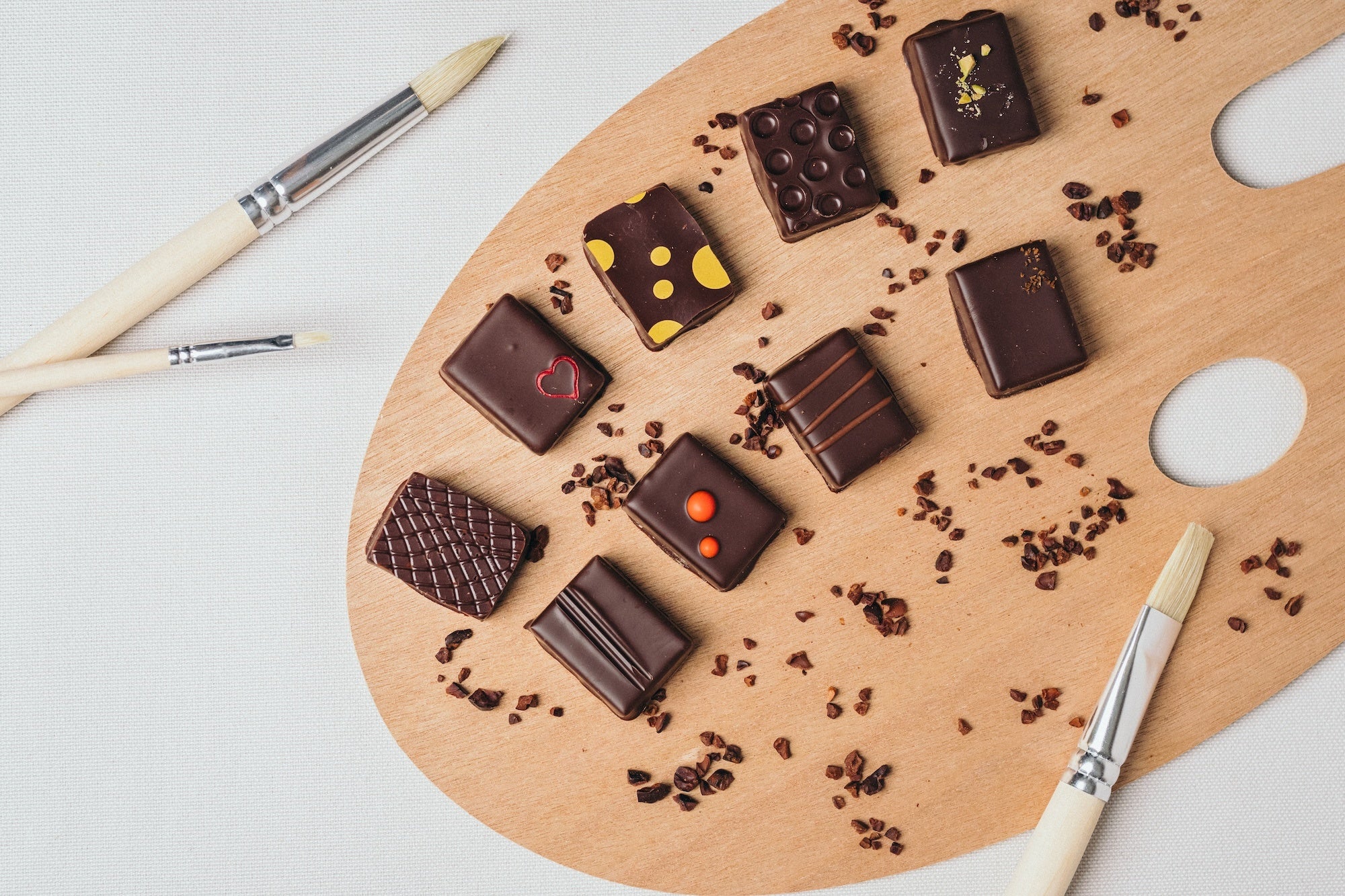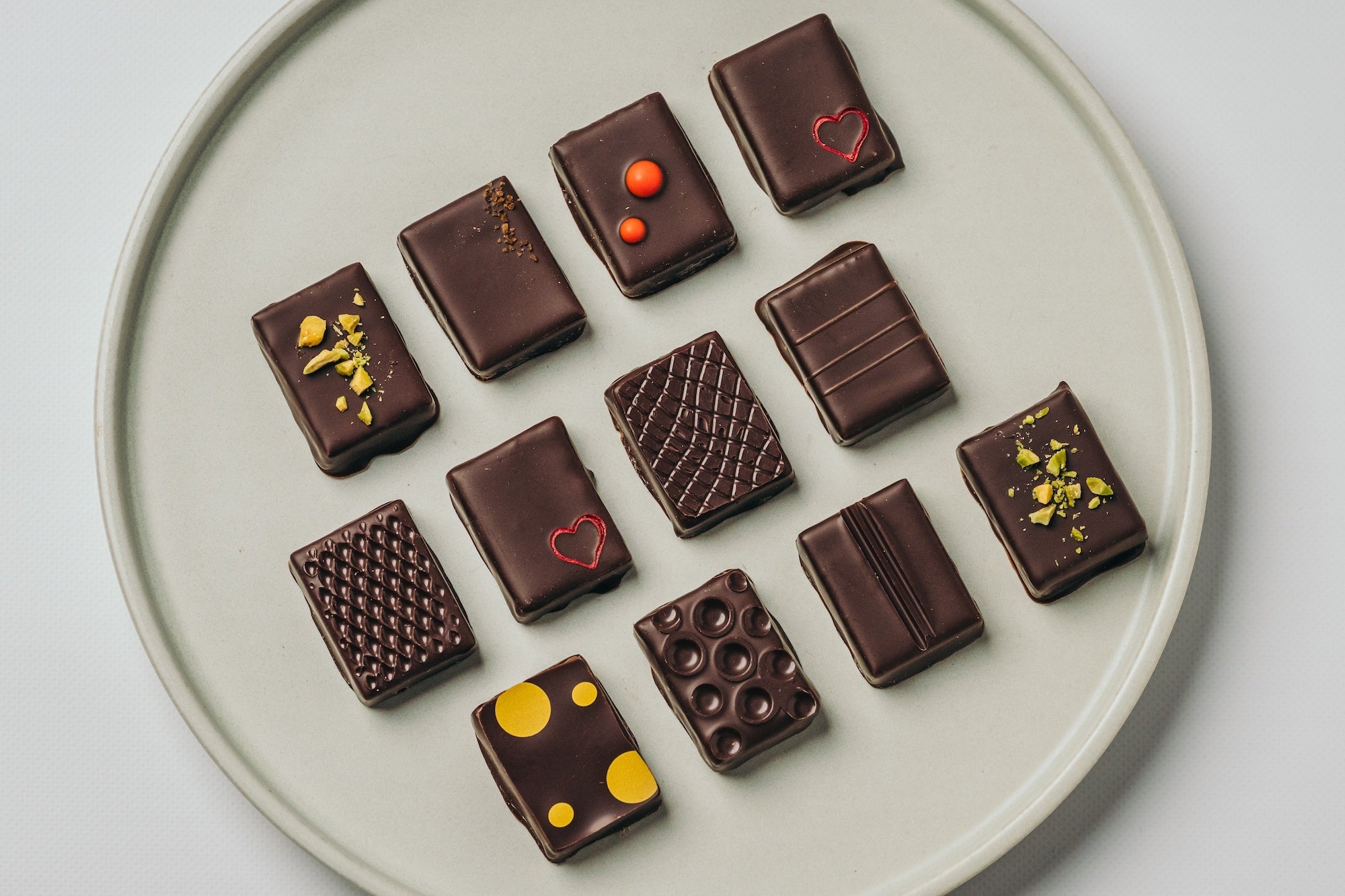 ガナッシュやプラリネからコーティングまで全て手作業によって生まれた“ビーントゥバー”のボンボンショコラ。厚さは口どけと食感をベストに感じられる約10mmに設定。産地別のカカオ本来の香りを引き出したガナッシュに、見た目にも美しいコーティングを施しました。