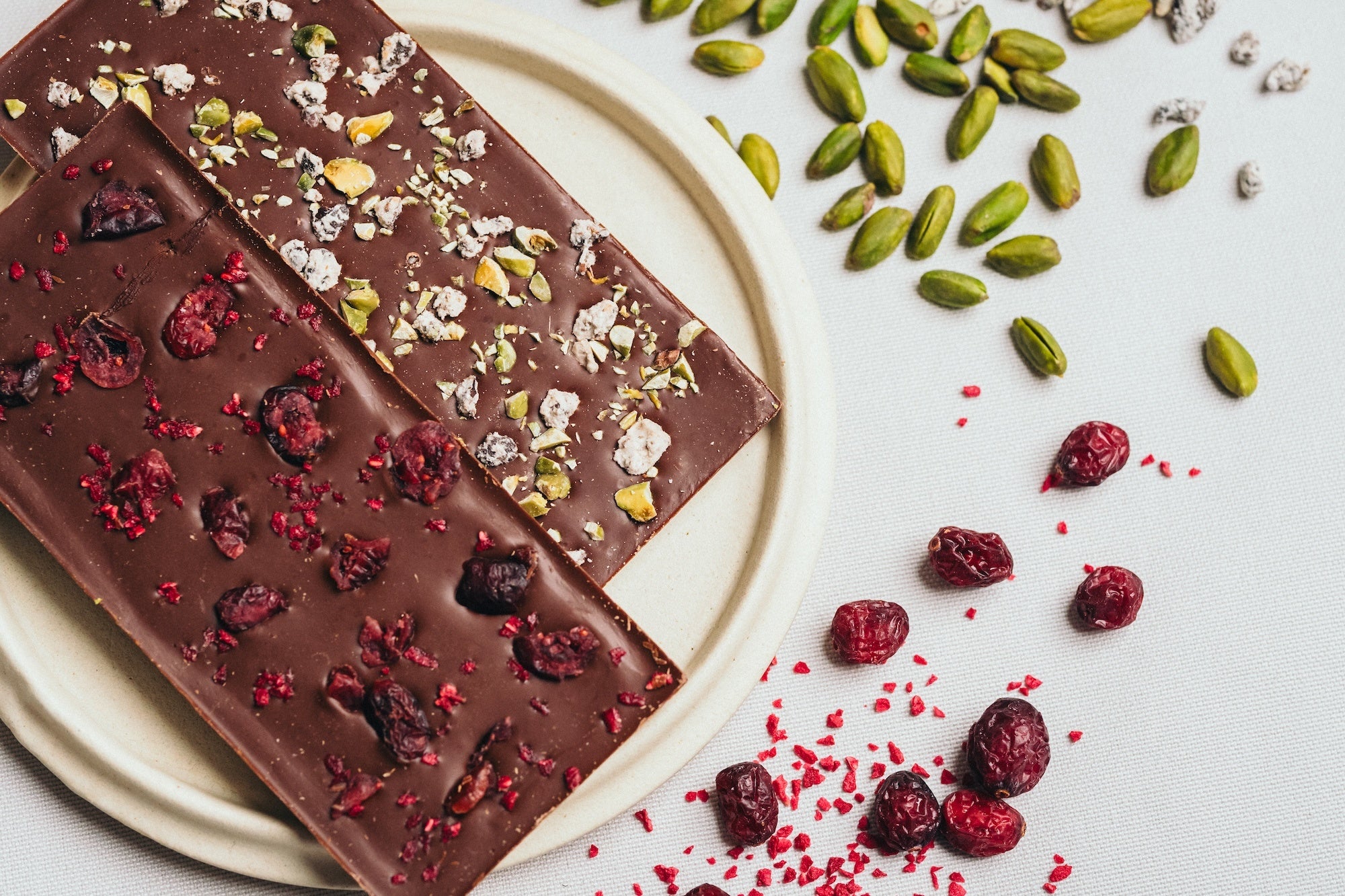 ダークチョコレートでありながら、豆本来のベリーさを存分に引き出し、ピスタチオとカカオニブが味わいに自然なコントラストを加えています。
