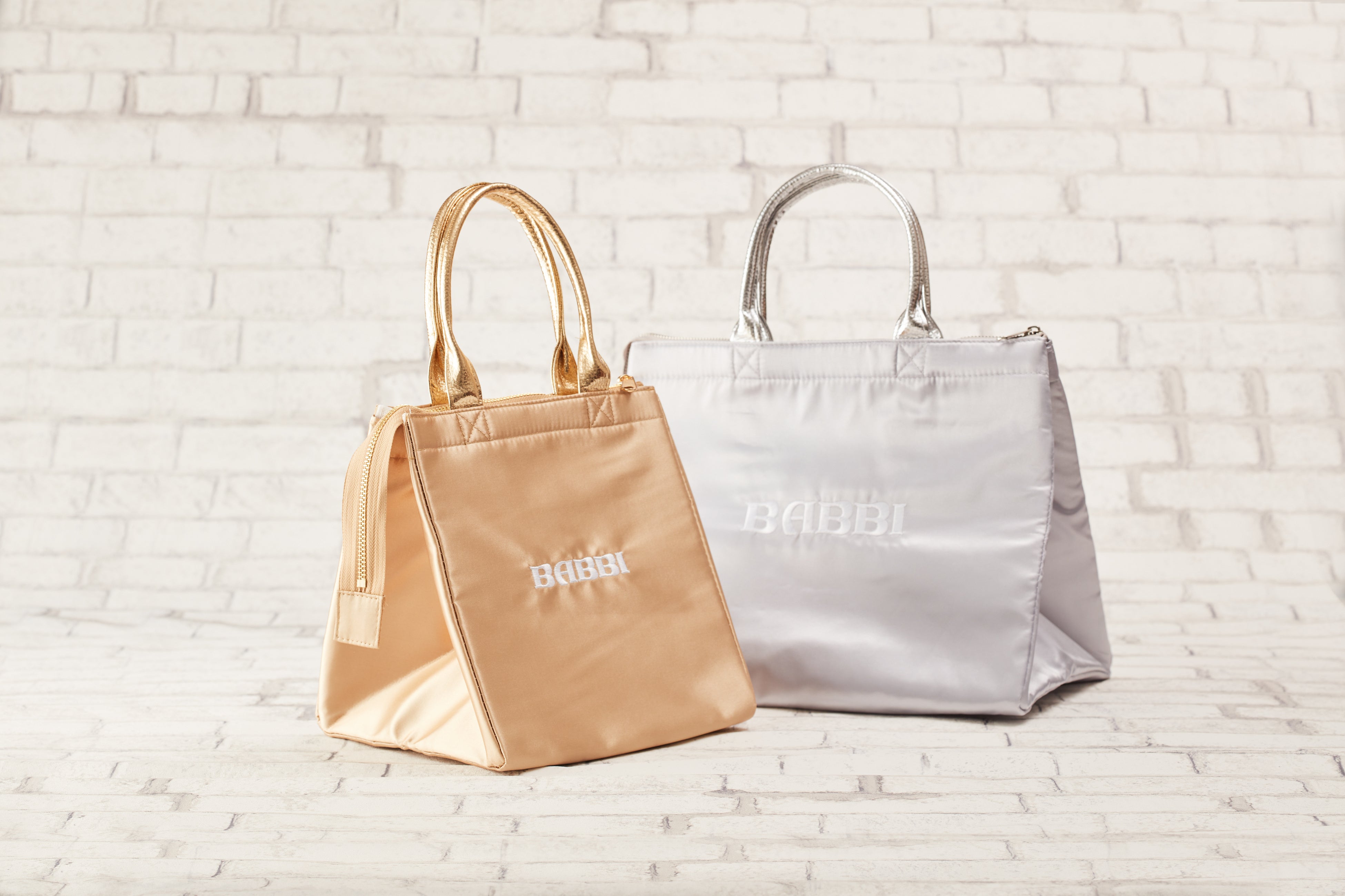 「BABBI」ウエハースに次いで人気の保冷バッグは、大きめマチが特徴で日常のお買い物にも使いやすいデザインです。カラーは、ゴールド(レギュラーサイズ)とシルバー(Lサイズ)、そして今回新色のダスティピンクが登場しました。