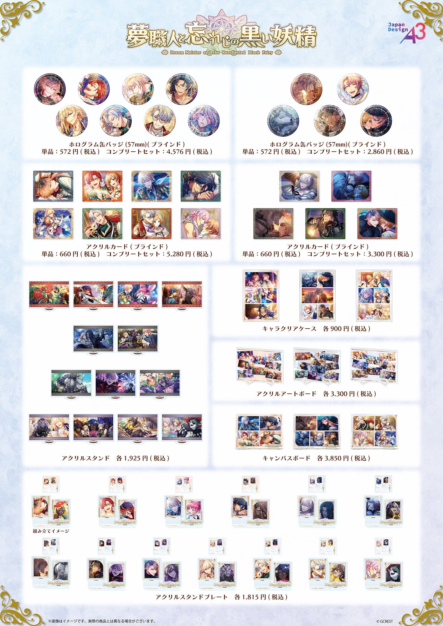 『夢職人と忘れじの黒い妖精』新商品を含めて関連商品を1会計2,200円(税込)お買い上げごとに、購入特典としてポストカード(全13種)をランダムで1枚プレゼント! 店舗および通販で購入した方が対象なので、グッズはもちろん特典のゲットもお忘れなく。