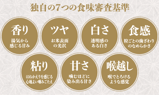 最終審査会では、食のプロである特別審査員6名で選考を行い、受賞者を選定。成分分析による機械審査を一切行わず、人が食べて美味しいと感じるお米を正しく評価するという点で、生産者からの信頼も厚く、権威あるコンテストです。