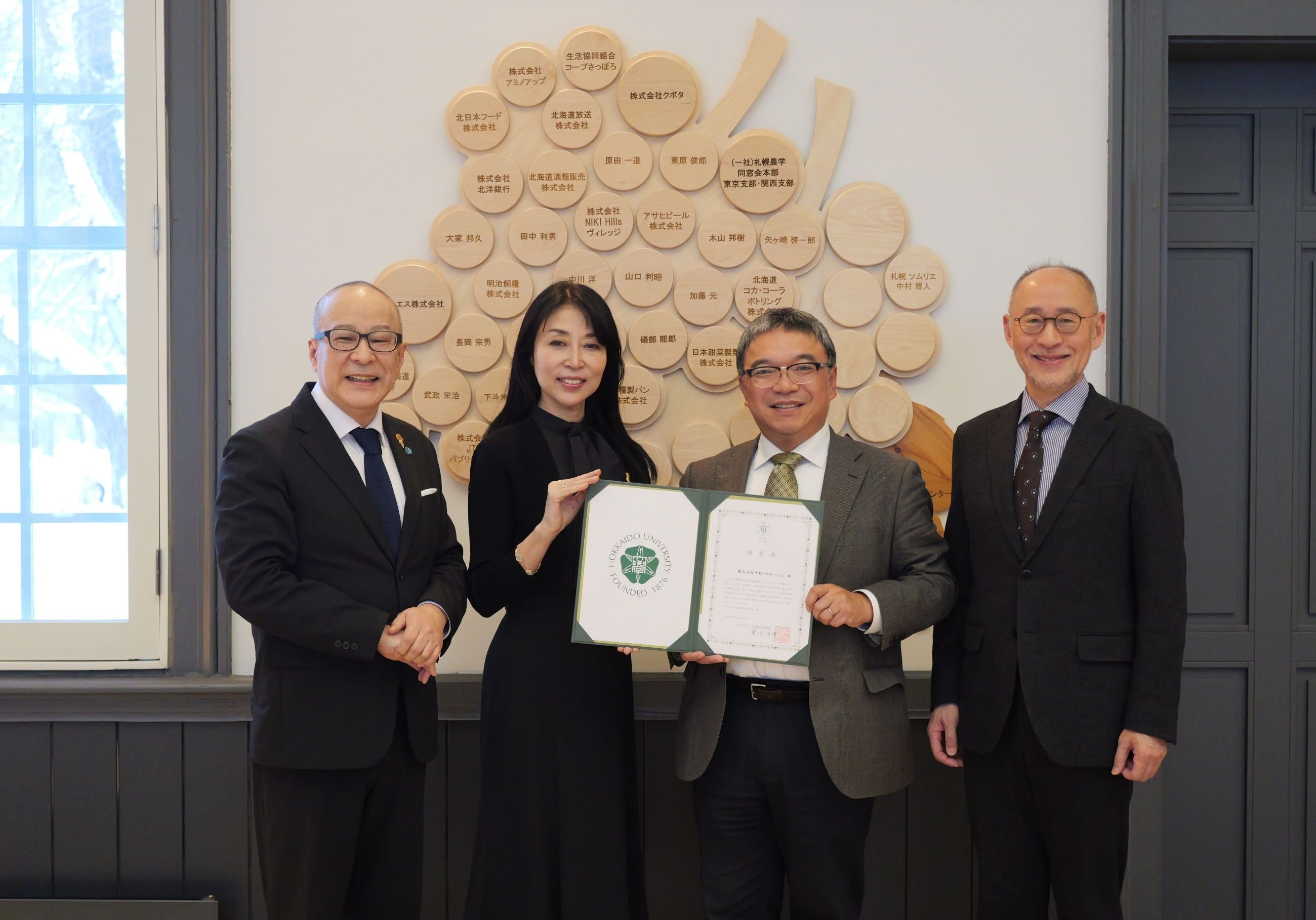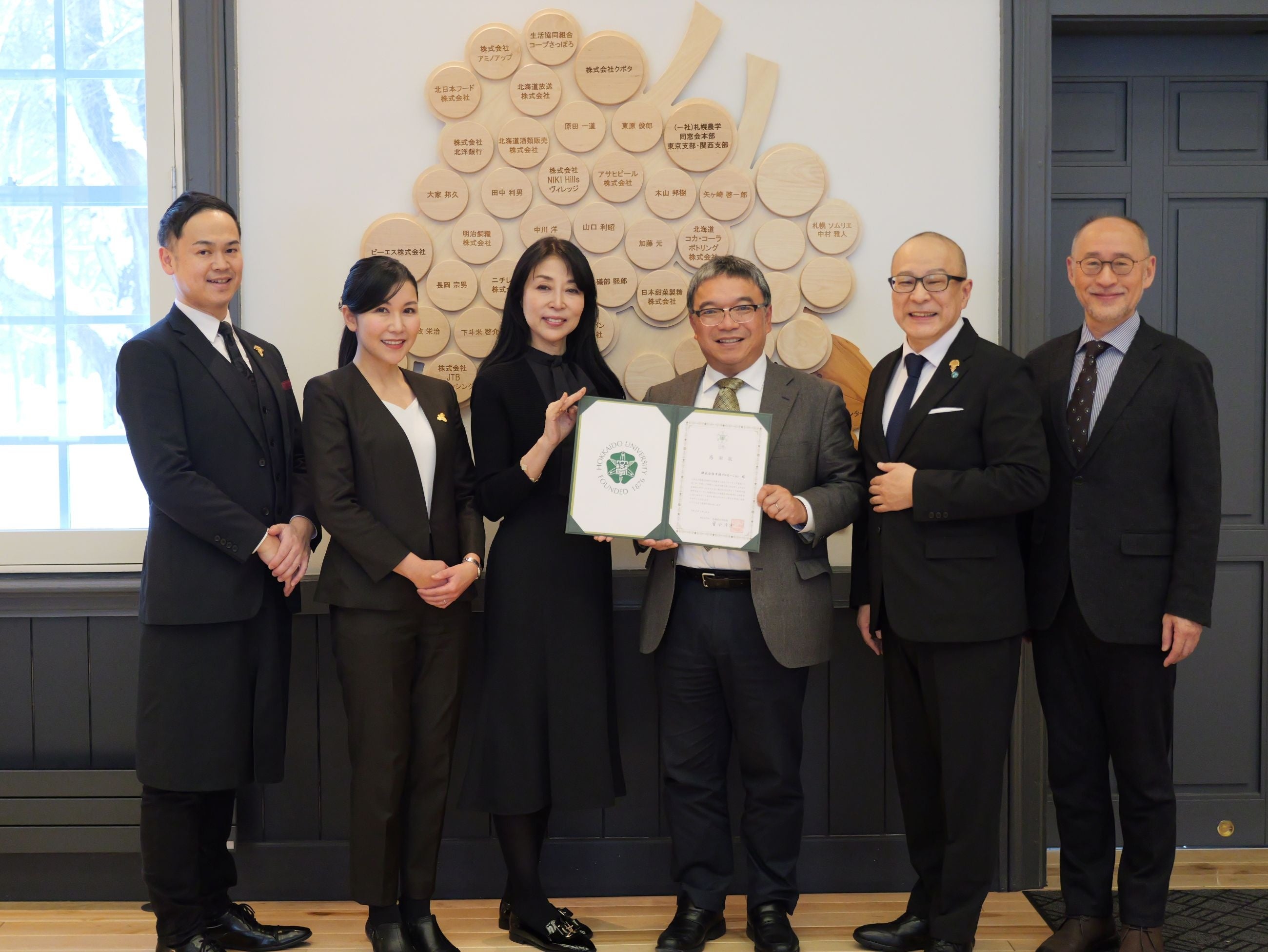 このたび、株式会社中村プロモーション(本社:札幌市、代表取締役:中村雅人ソムリエ)は、北海道大学 北海道ワイン教育研究センターに対し、大学150周年記念事業の一環として100万円の寄附を行いました。