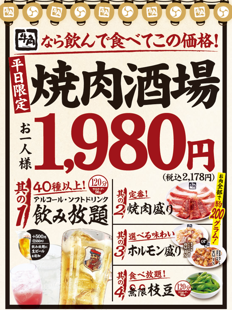 一方で、焼肉市場は拡大傾向にあるものの、円安や物価高の影響を受け、焼肉の利用頻度は「特別な日」に限られがちになっている現状があります。こうした背景を踏まえ、牛角では「友人や同僚と週1回、あるいは月1回でも気軽に立ち寄れる焼肉店」を目指し、焼肉と居酒屋利用を掛け合わせた新企画『焼肉酒場』を考案しました。企画当初は3,000円程度での商品設計も検討しましたが、日常使いを実現するため社内で議論を重ね、1,980円という限界価格に決定しました。