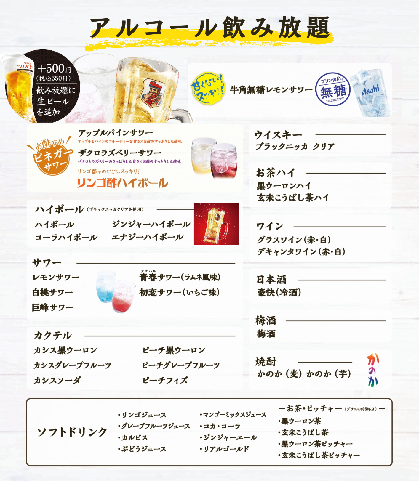 ※牛角食べ放題専門店では、ラインナップ数・内容が異なります。