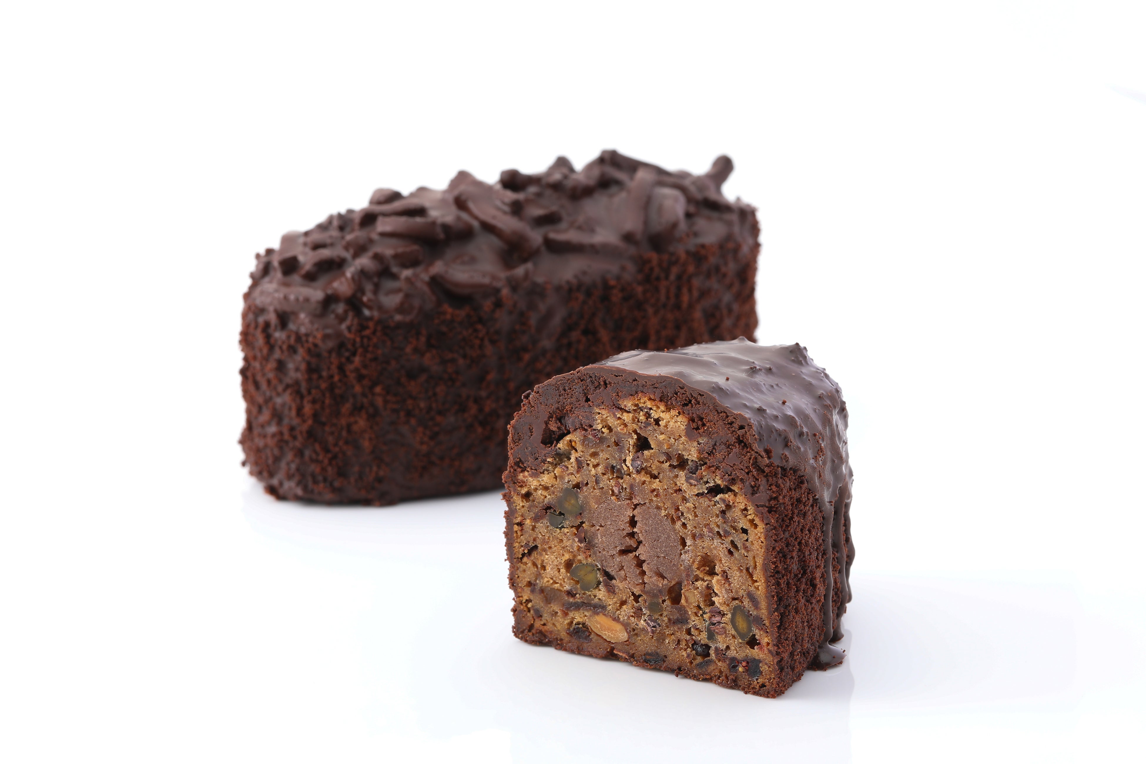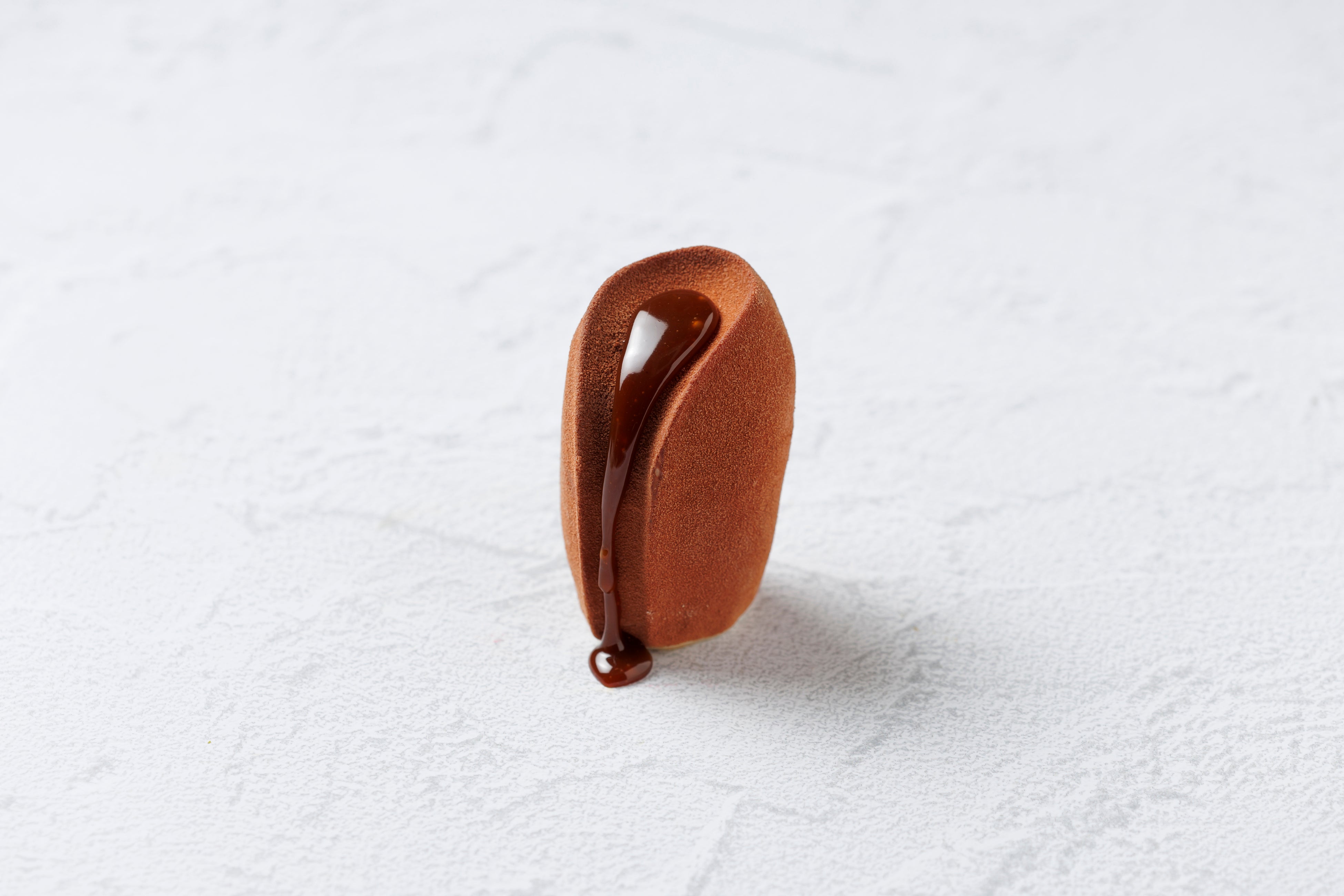 特徴的なゴツゴツした表面はカカオポッドをイメージしています。数種類のドライフルーツとスパイス、ナッツ、カカオをたっぷり生地に練りこみ、中心にはフランス産マロンを使用したラム酒香る栗ペーストを忍ばせました。自家製ビーントゥバーチョコレートでコーティングしバレンタインの装いに変わり、カカオの魅力を存分に楽しめる一品に仕上げています 。