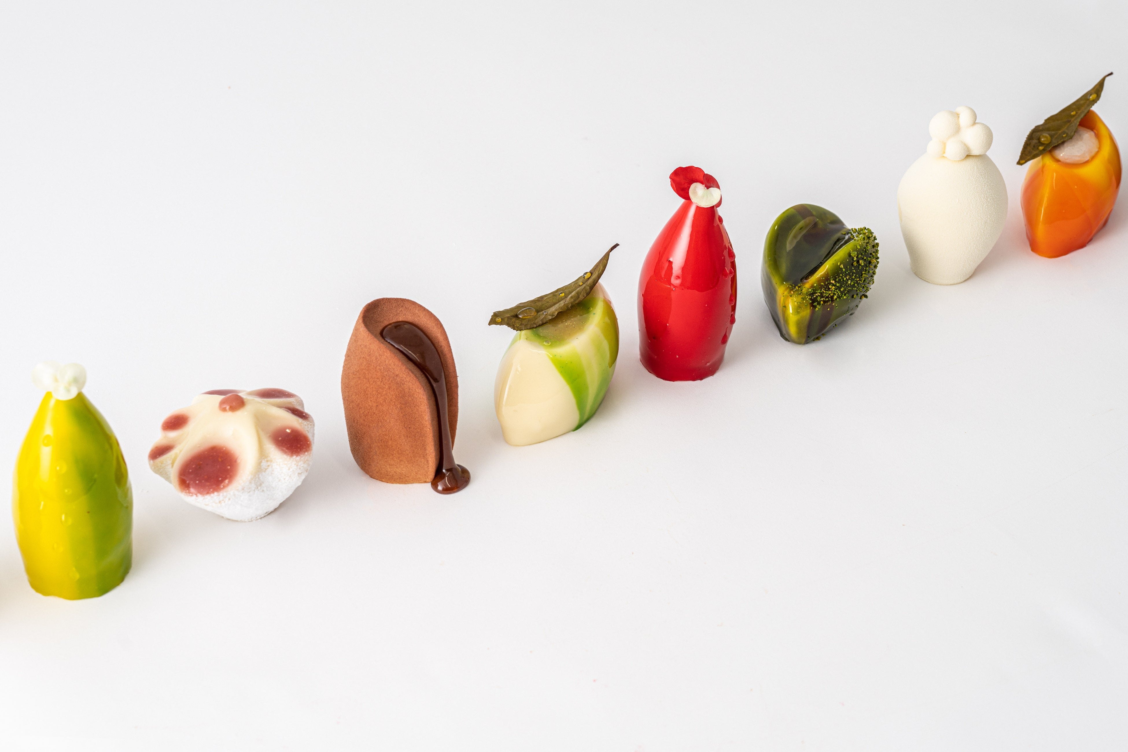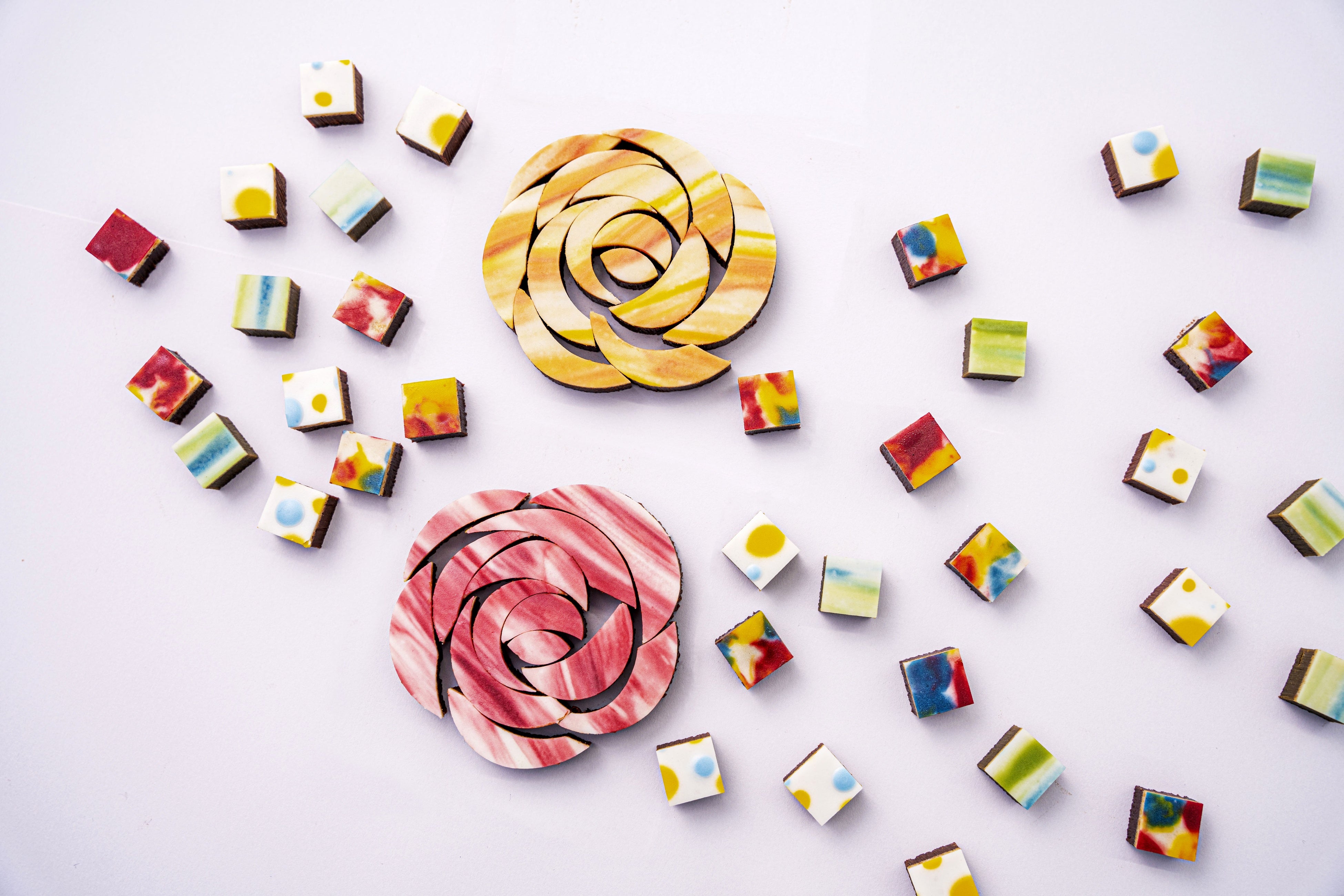 生チョコレートは、全て卵や乳製品などを使用しない植物性。世界的にも稀な天然由来の着色料を使用したシュガーペーストによる自由な色の表現を発信しています。