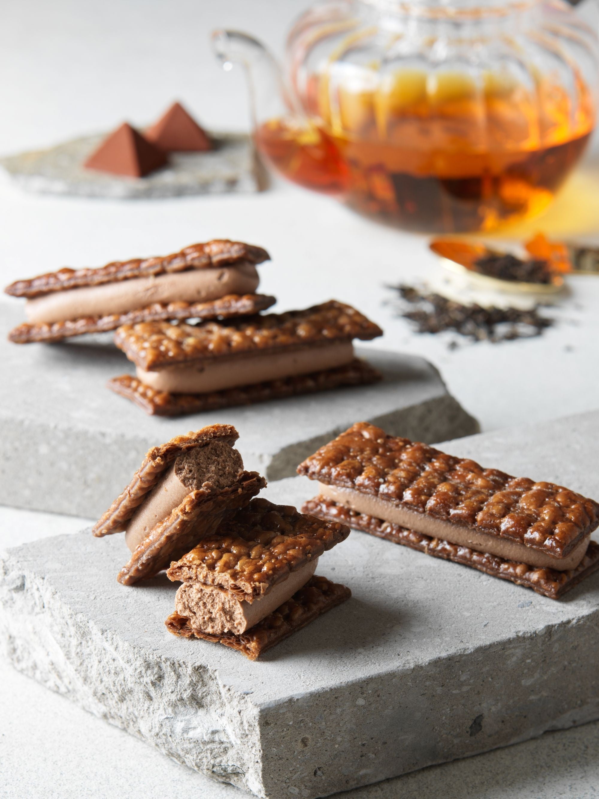 ルタオの人気チョコレート「ロイヤルモンターニュ」をチョコクリームに使用し、ダージリンの香りがふわりと広がる上品な味わいに仕立てました。サクサク食感のココア風味のパイ生地でサンドした、ジェイアール名古屋タカシマヤ催事会場限定スイーツです。
