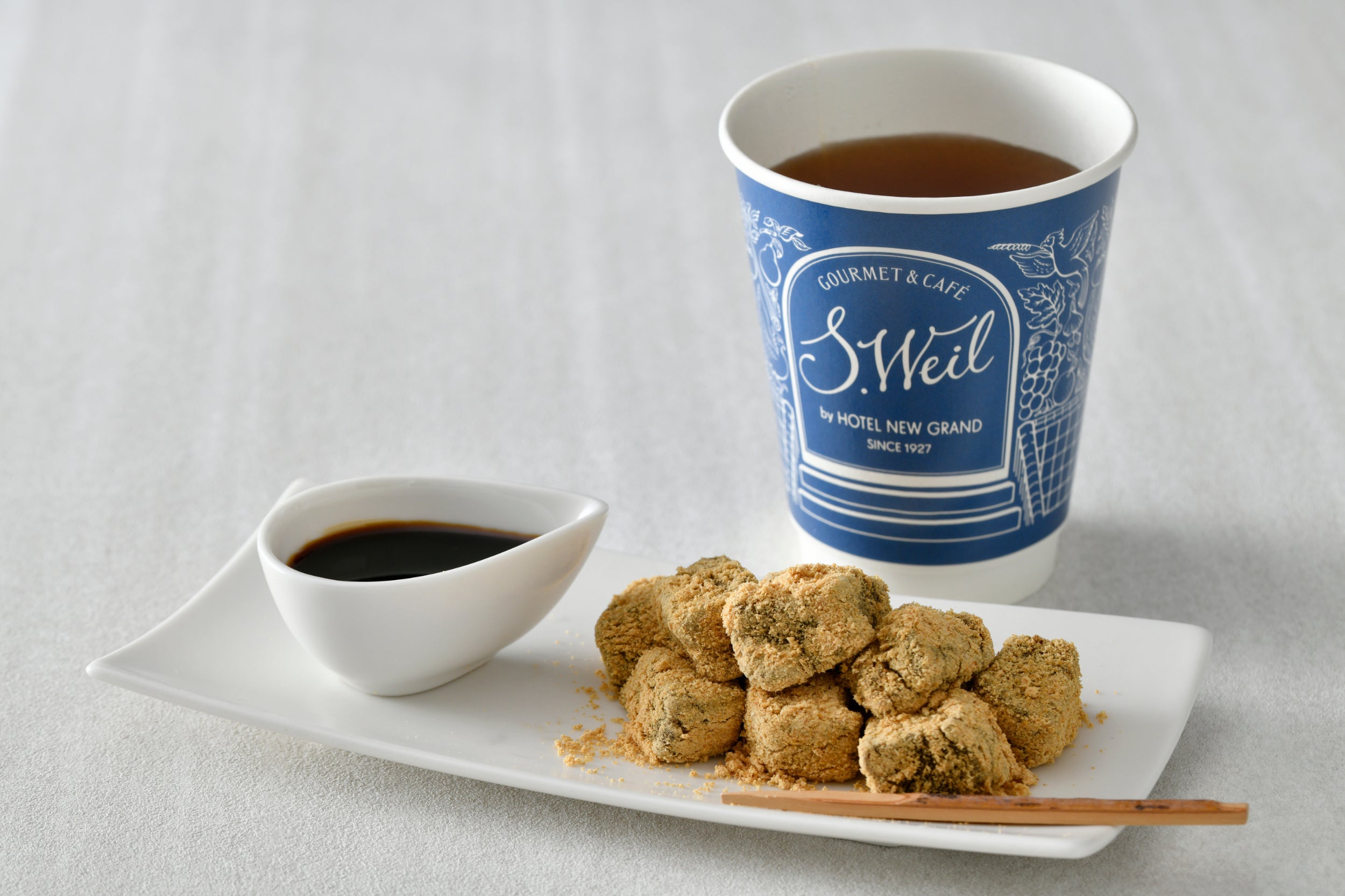 黒糖とS.Weilのオリジナルコーヒー「ザ・コーヒー」を練り込んだ、もっちりとした食感とくちどけの良さが魅力のわらび餅と、香ばしいまろやかな味わいの伊勢のほうじ茶をセットにした、カフェ専用メニューです。