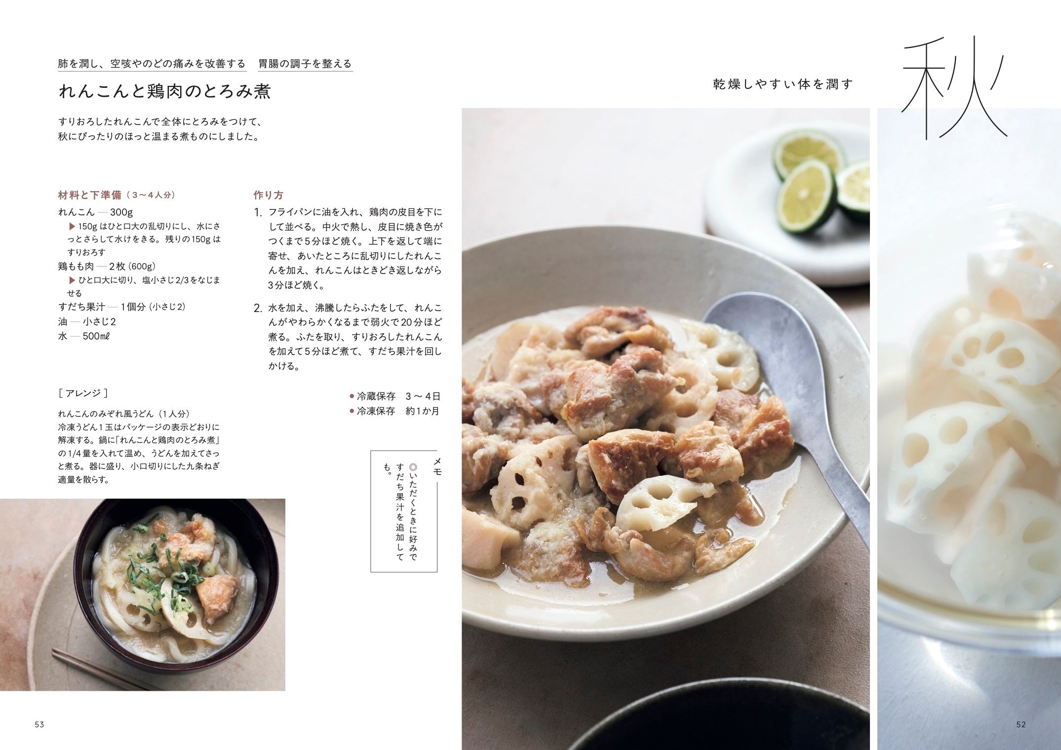 使う食材はおなじみのものばかり。難しい調理法もなく、いつもの料理と同様に作ることができます。それでいてそれぞれのレシピには著者・西岡さんならではの工夫があり、薬膳的な効能を摂り入れながら、新鮮なおいしさを味わうことができます。