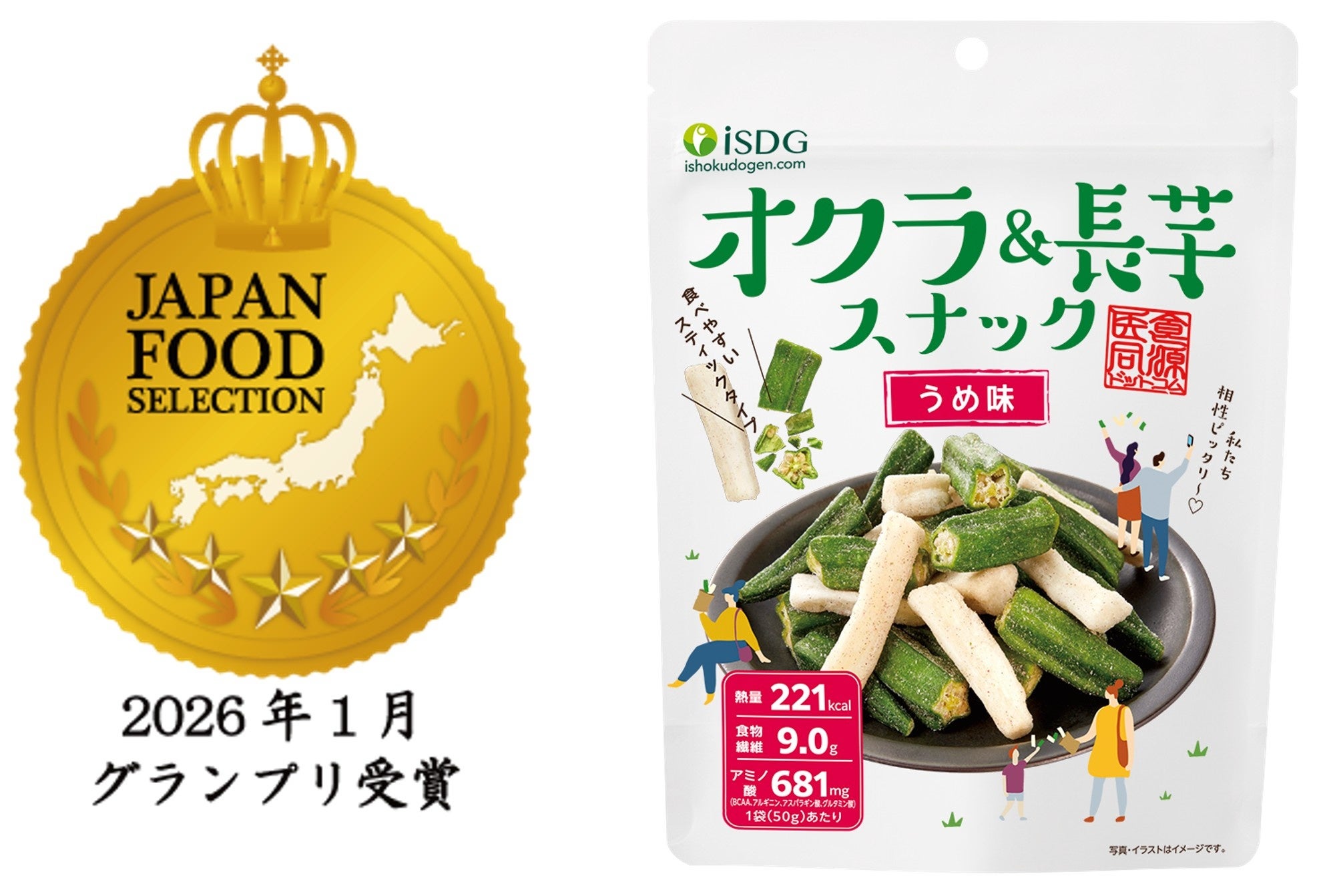 健康食品、食品、衛生用品、化粧品等の製造、販売を行う株式会社医⾷同源ドットコム(本社:埼⽟県さいたま市、代表取締役:夏⽬洋司)は、一般社団法人フードアナリスト協会主催のジャパン・フード・セレクション第95回審査会(2026年1月)にて弊社の『オクラ&長芋スナック うめ味』がグランプリを受賞!