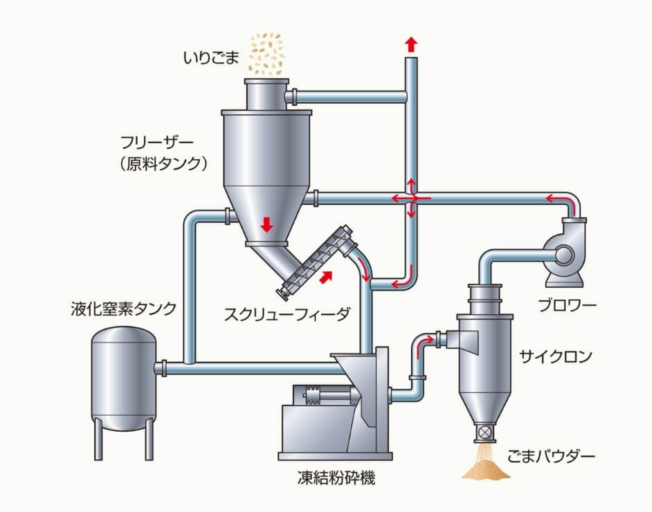 パウダー化しにくいとされる油分の多い食品を液化窒素を用いた凍結粉砕加工することできめの細かなパウダー化を実現することができました。
