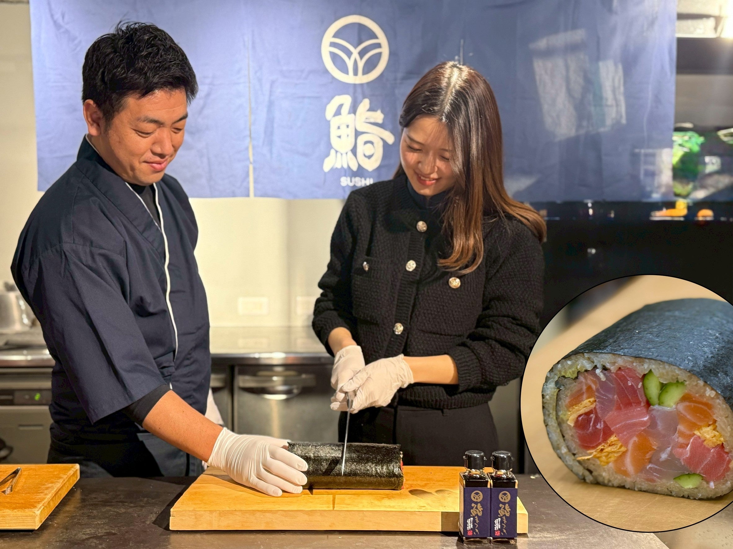 また、催事のスタートを彩る「参加型の太巻きオープニングセレモニー」もオプションで付けることが可能です。職人の掛け声に合わせて具材を並べ、全員で息を合わせて巻き上げる瞬間は、会場の空気を一気に温め、自然と拍手と笑顔が広がること間違いなしです。