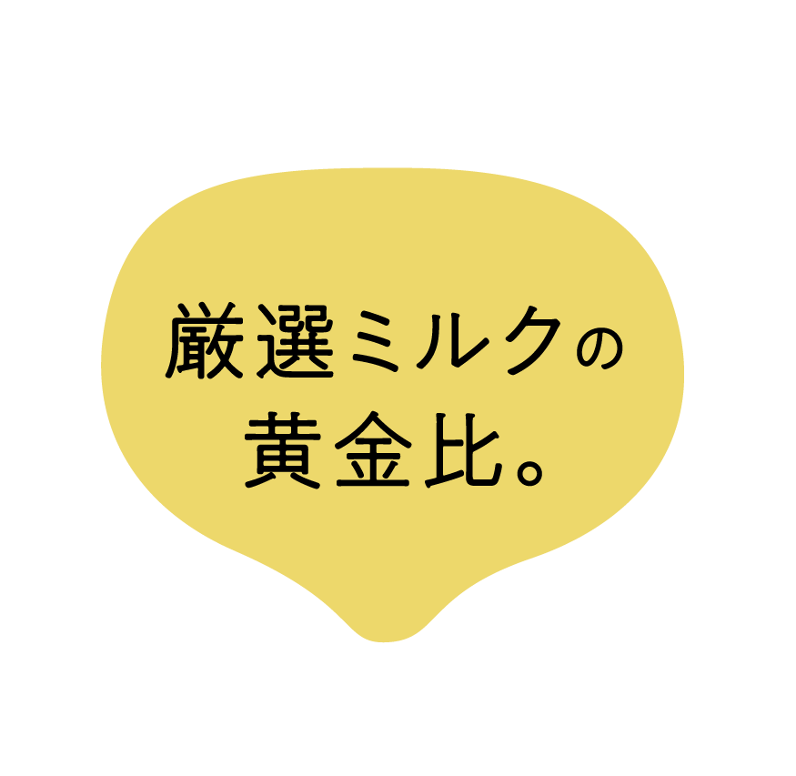 「ミルクマニア」の最大の特長は、ミルク原料への徹底したこだわりです。厳選ミルクを組み合わせ、試作を重ねた結果、クリーム風味のパウダーと練乳パウダーを1:1の黄金比で配合。食べ始めから最後まで続くコク深いミルク感を実現しました。