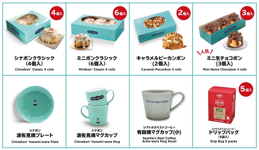 また、人気のシナボングッズや、「シナボン」と相性が抜群の「シアトルズベストコーヒー」のドリップバッグコーヒーなど、豊富に取り揃えております。