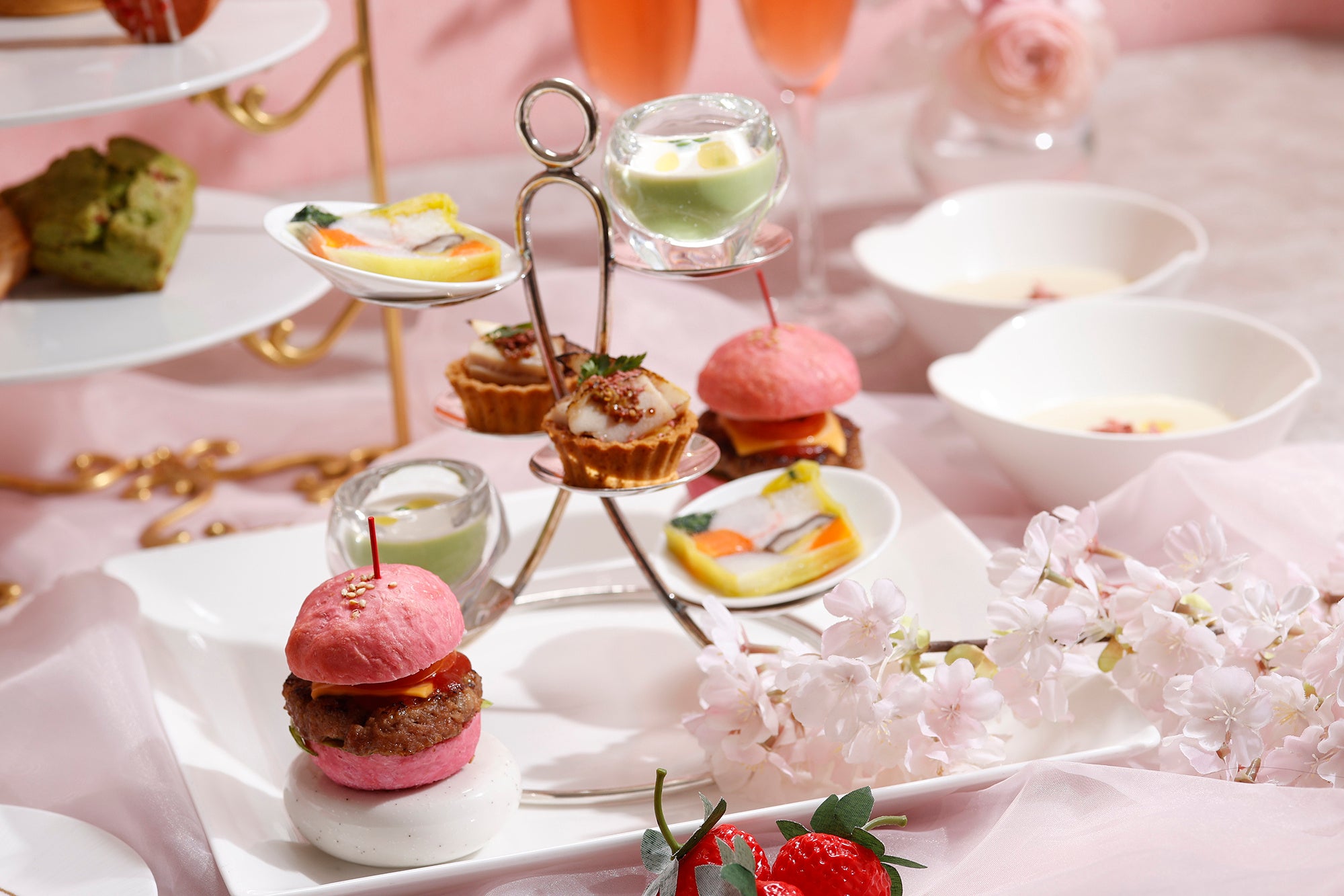 また、東京湾の景色が一望できるフレンチダイニングマンハッタンでは、信玄鶏のハニーマスタードを合わせたタケノコのキッシュ、特製のピンクハンバーガー、桜が香るカブのポタージュなど、マンハッタン限定のセイボリーを提供いたします。