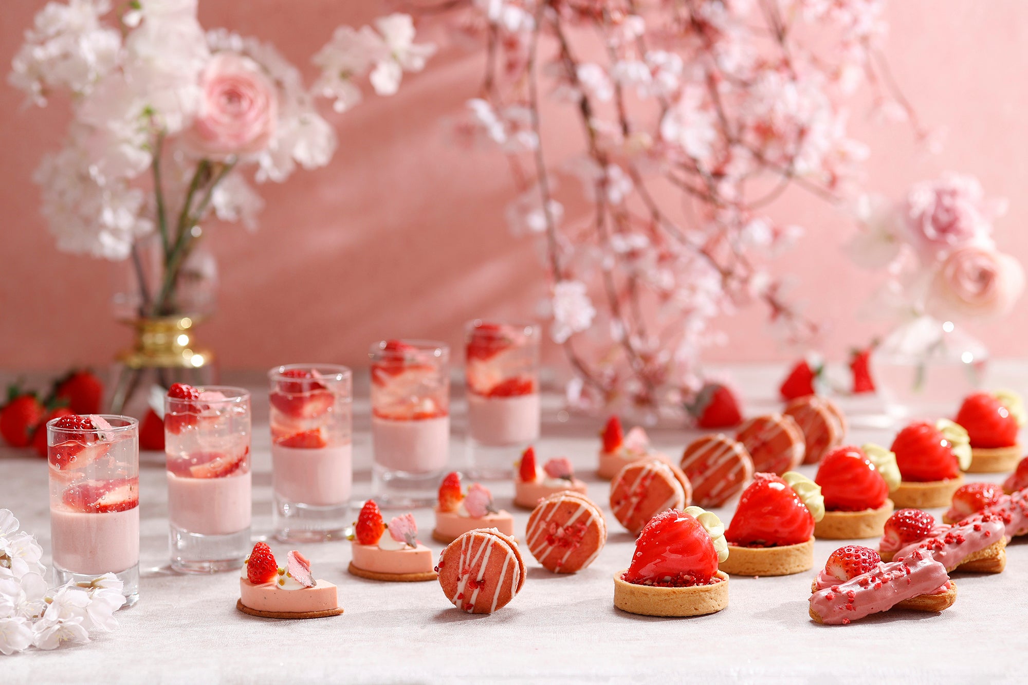 桜色の華やぎに満ちた優雅な世界観の中で、いちごの甘い誘惑と桜の香りに包まれる、心ときめく至福のティータイムをお過ごしください。