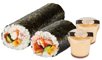 特選恵方巻とちょい足し恵方細巻セット、特選恵方巻と豪華海鮮恵方巻(ハーフ)プレミアムプリンペアセット
