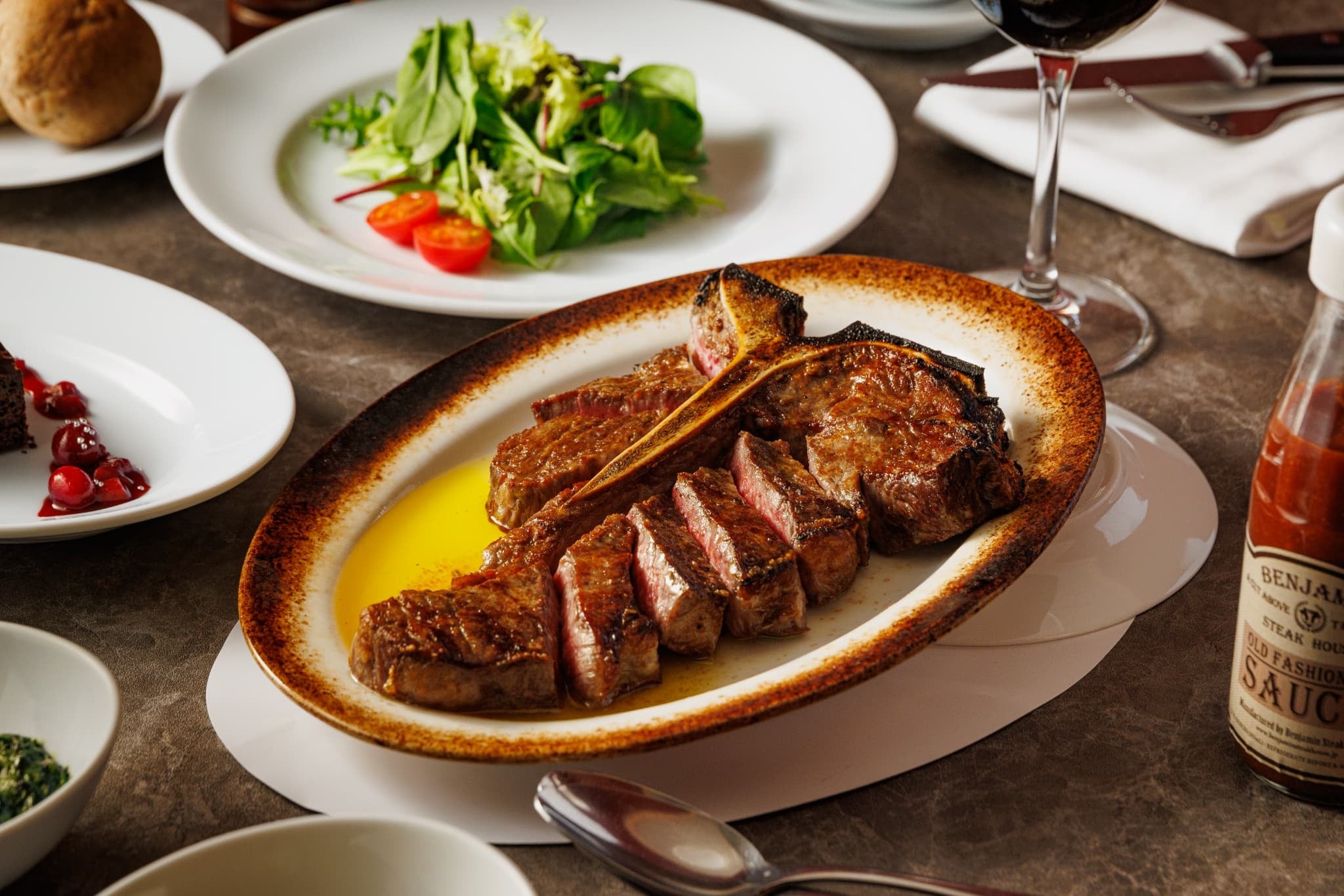 ベンジャミンステーキハウスの代名詞ともいえるUSDAプライムビーフを豪快に焼き上げたTボーンステーキ。