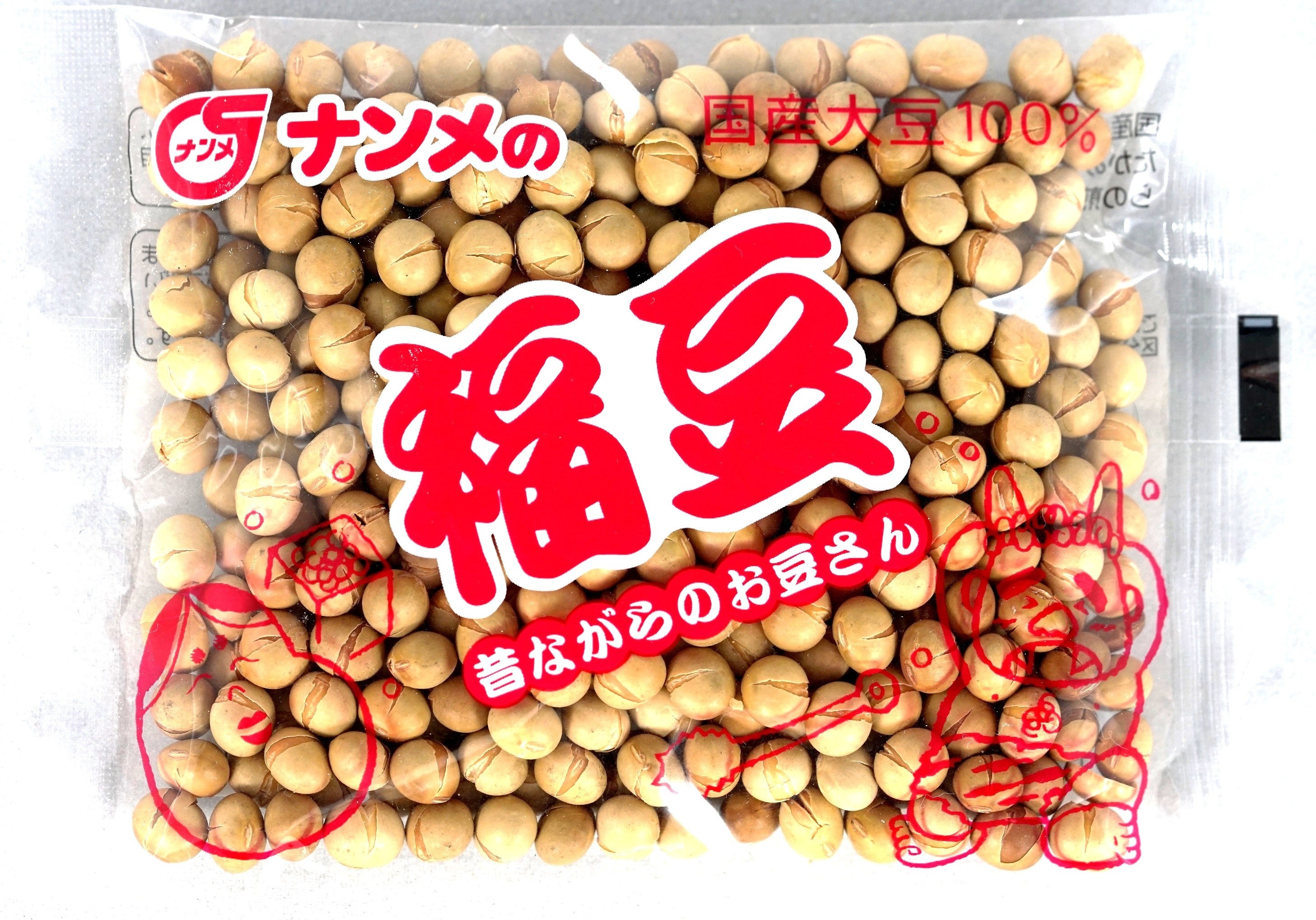 当社の福豆は、島根県産の煎り大豆に適した大豆を使用し、皮ごと煎ることで香ばしさと噛み応えを追求した、昔ながらの煎り大豆です。