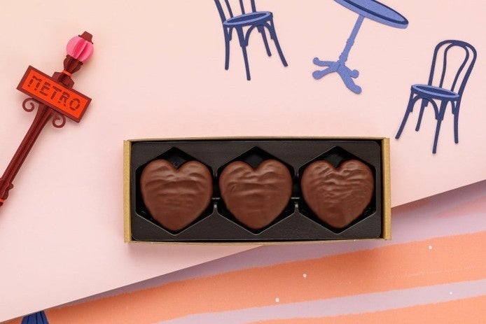 アラン・デュカスの思い出に残る“おばあちゃん作ってもらったビスケット”をイメージした人気商品「ピュール・ブール」をハート型に焼き上げ、ショコラ オ・レでコーティング。