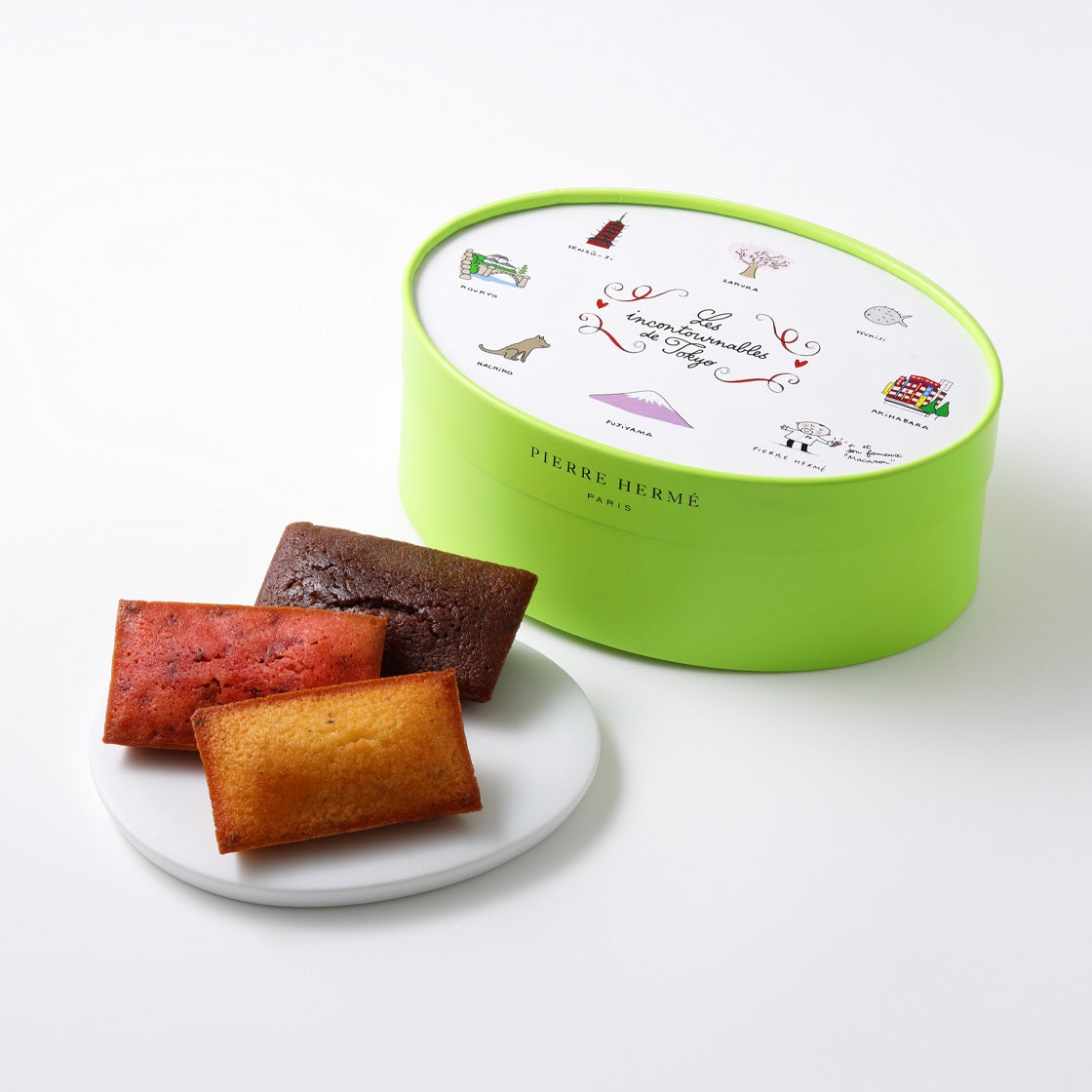 東京や日本をイメージしたイラストがあしらわれた特別なボックスに、高い人気を誇るフィナンシェ3種を詰め合わせた焼き菓子ギフトです。イラストはフランスの人気イラストレーター、ソレダッド・ブラヴィによって描かれました。