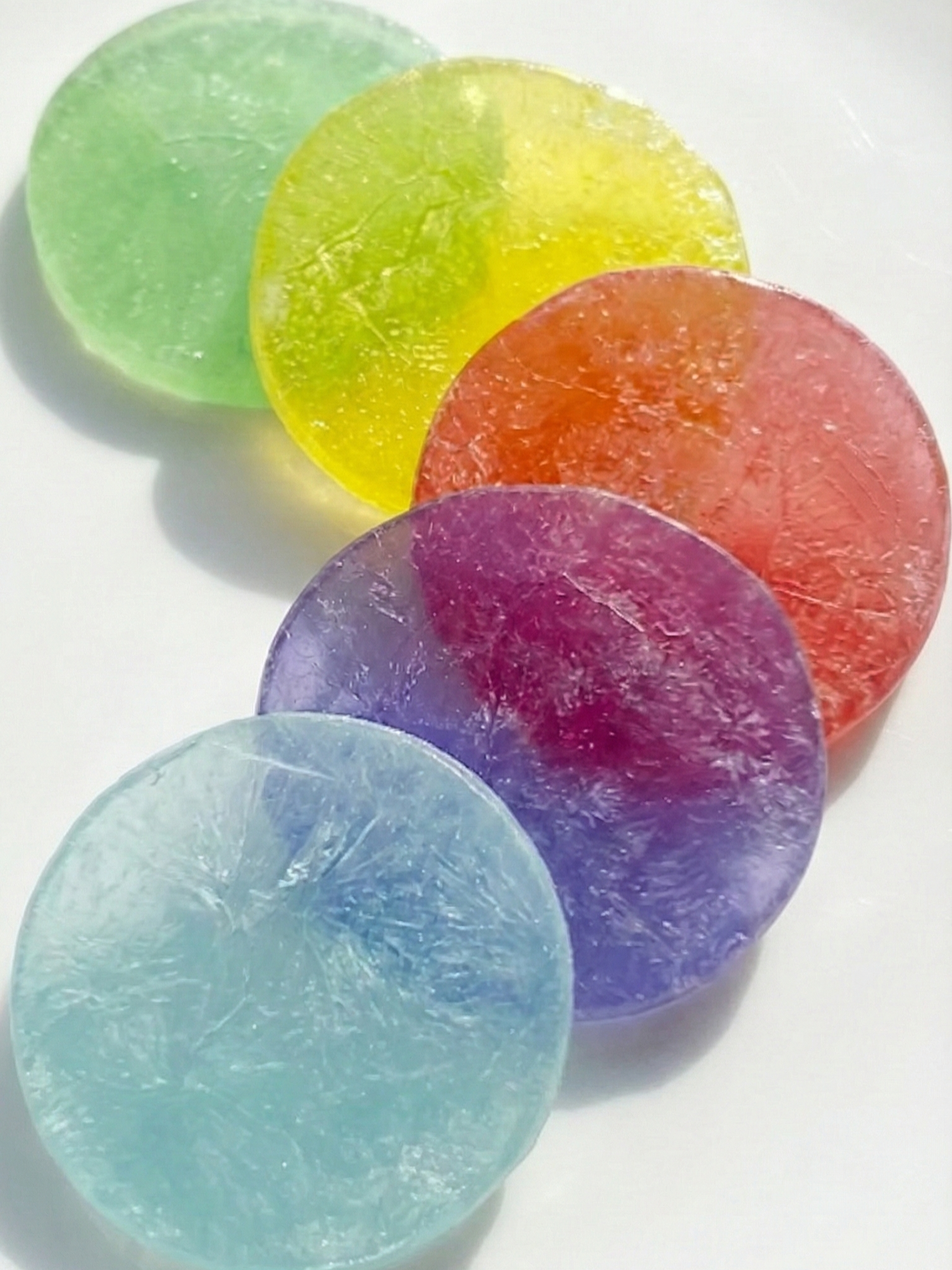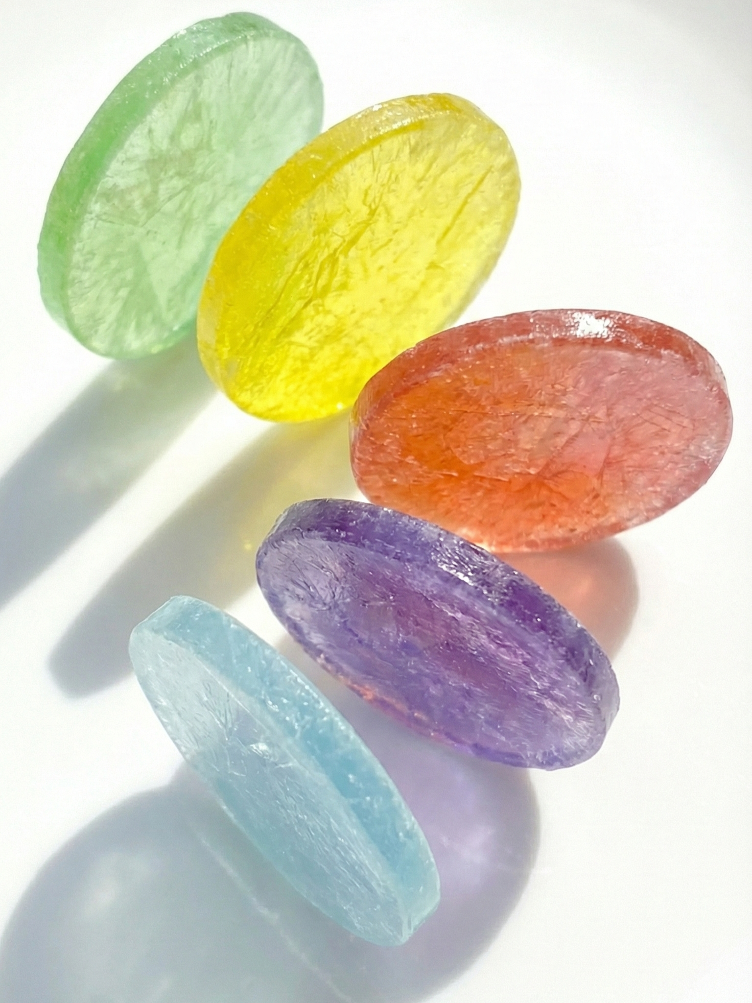 薄く仕上げたことで、琥珀糖特有の「外はシャリッ、中はプルン」という食感が進化しました。歯を入れた瞬間に「パリッ」と弾けるような軽やかな食感は、ASMRなどの音を楽しむシーンにも最適です。