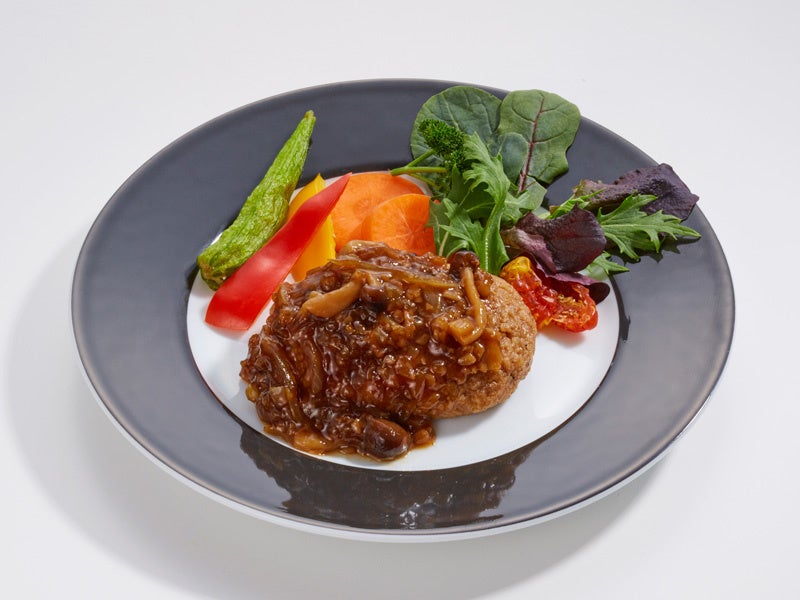 代替肉を使用した、ヴィーガン・ハラール対応のハンバーグ。