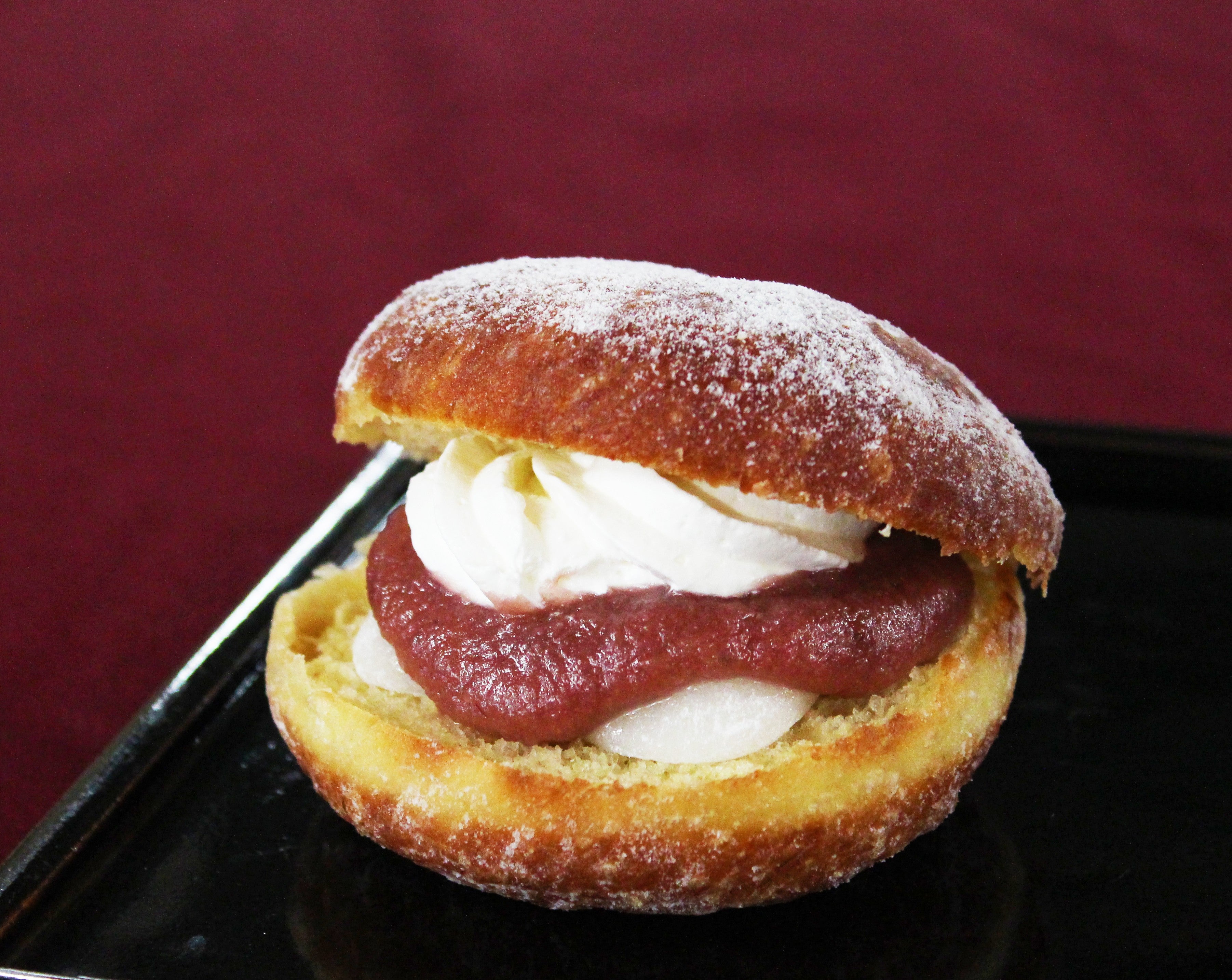 ブリオッシュ生地のような”ふわもち”な生ドーナツと和菓子の美味しさを合わせた和生どーなつです。江戸時代から続く愛媛の銘菓“薄墨羊羹”のあんこをベースに苺を練り込んだ自家製苺餡、もちもちの求肥、ホイップクリームを合わせた日本橋三越本店限定品です。