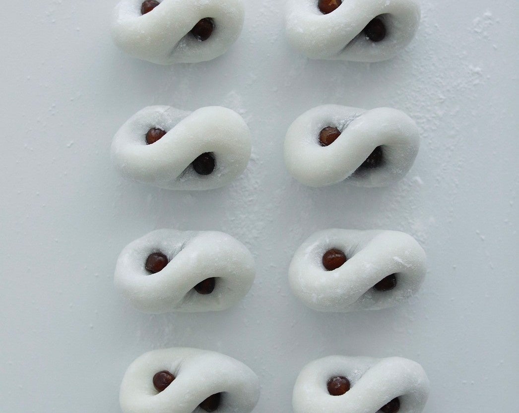 宇美八幡宮内に店を構える〈季のせ〉ならではの大福です。八幡宮と80000をかけ、さらに縁起の良い末広がり、無限に良いことが続きますようにとの願いを込めた“8”の形を模し、塩豆大福に仕上げました。