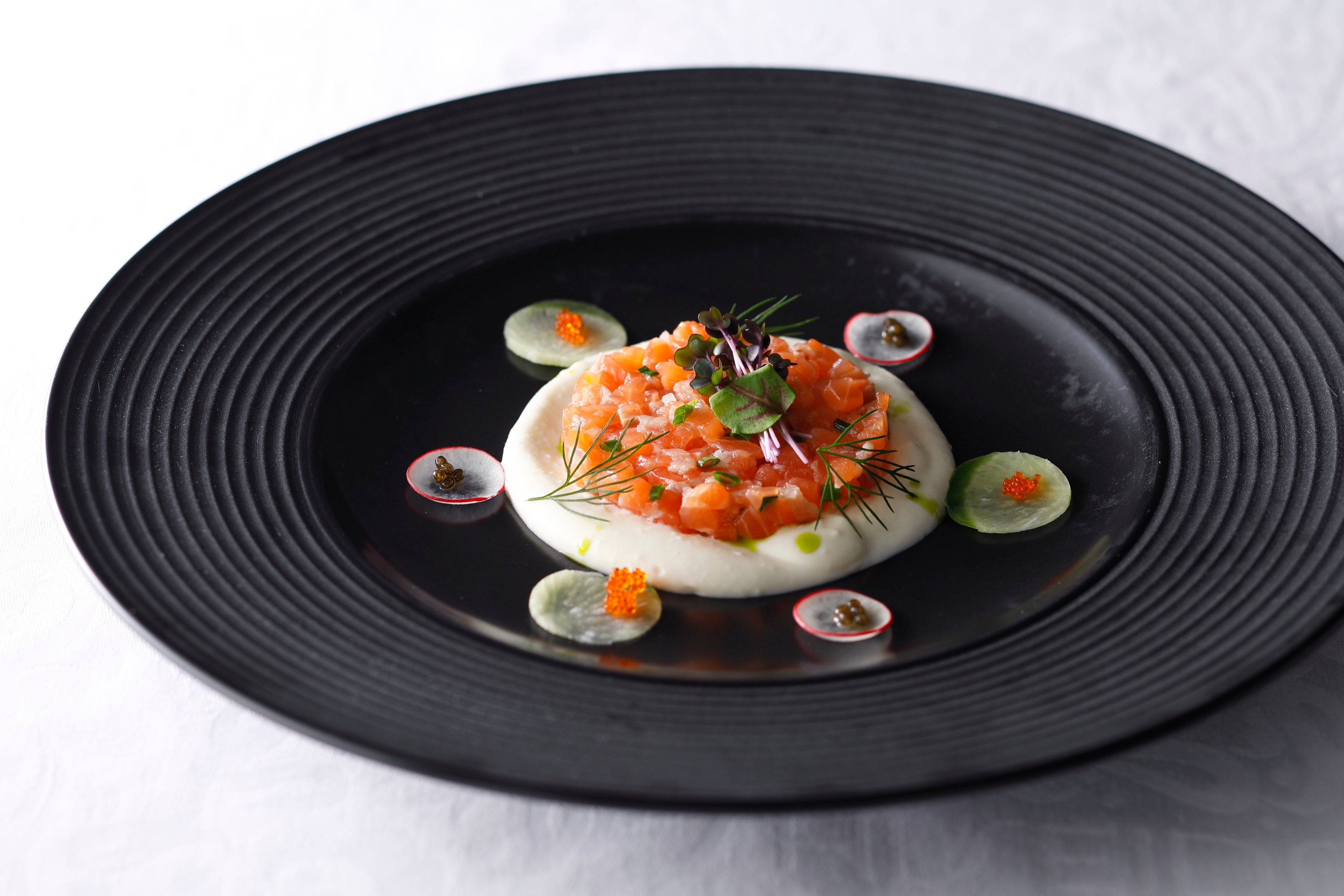 サーモンと生ハムのタルタル フヌイユのクリーム