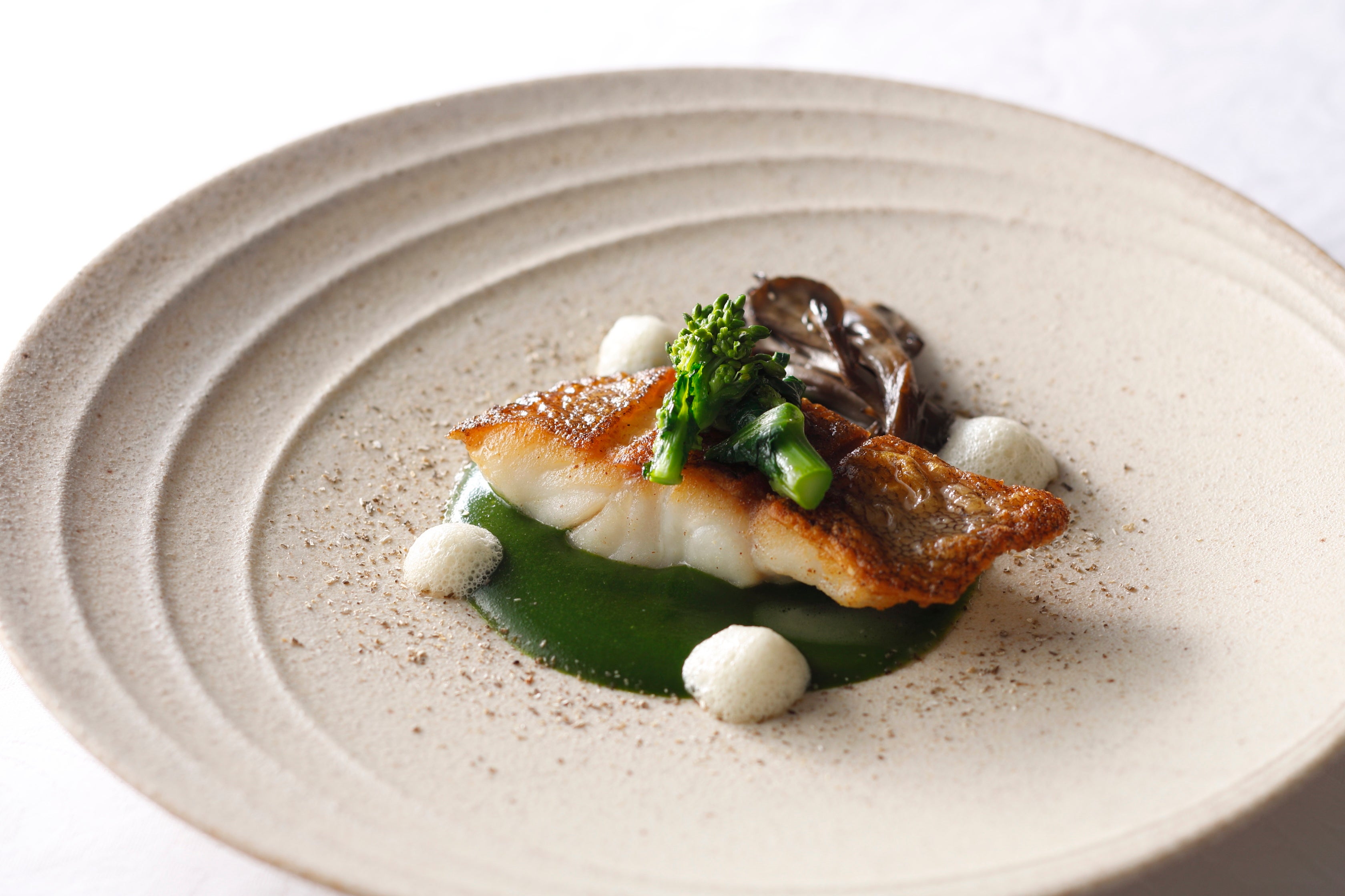 クエのムニエル セリのピューレとエキューム クエのジュ