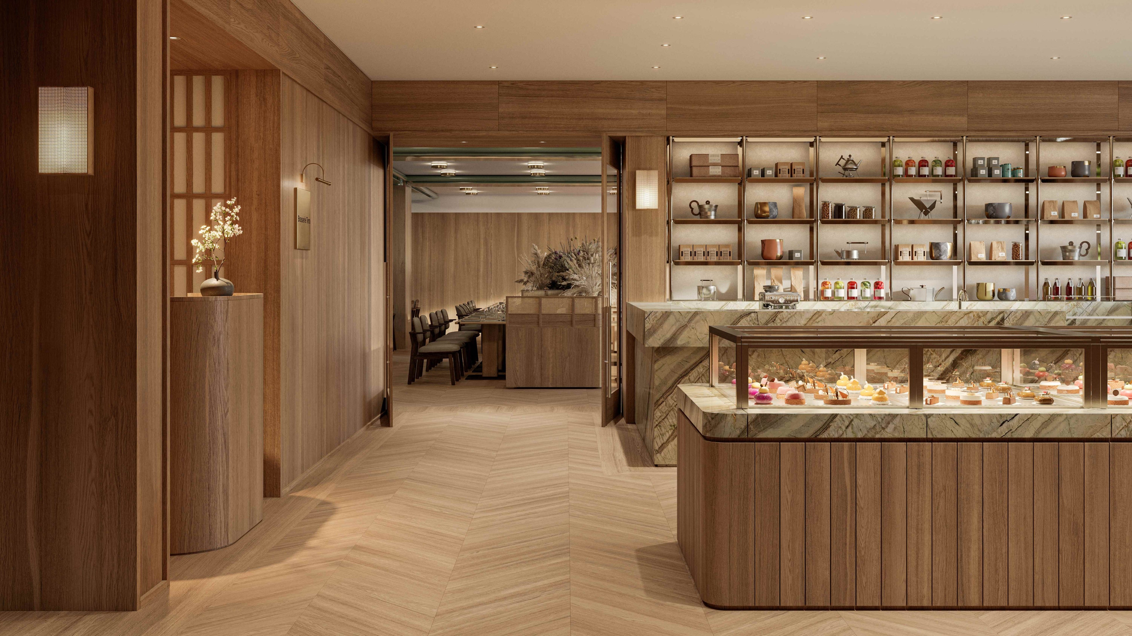 ラウンジバースペースでは、時間帯に応じた異なるスタイルのメニューをご用意します。日中は紅茶やコーヒー、ノンアルコールドリンク、季節のカクテルとともに軽食やスイーツをお楽しみいただき、午後にはハイティーのようなスタイルで軽めのランチやシェアできるメニューを中心に構成します。夕方以降は、ディナー前のひとときをアペリティフとともにお過ごしいただけます。ワインリストには、貴重な旧世界の生産者のワインに加え、カリフォルニア、日本のワイン、日本酒、さらには京都や関西の銘柄も幅広く取り揃えています。併設するペストリーショップでは、パティシエのエマ ホロウィッツ氏と、ミシュラン三つ星レストラン L’Effervescence(レフェルヴェソンス)出身の森田未生氏が共同監修する、季節を映したスイーツや軽食を店内およびテイクアウトでお楽しみいただけます。宮川町の気風を取り入れた独創的なアプローチで、伝統と革新を感じるラインナップを展開します。
