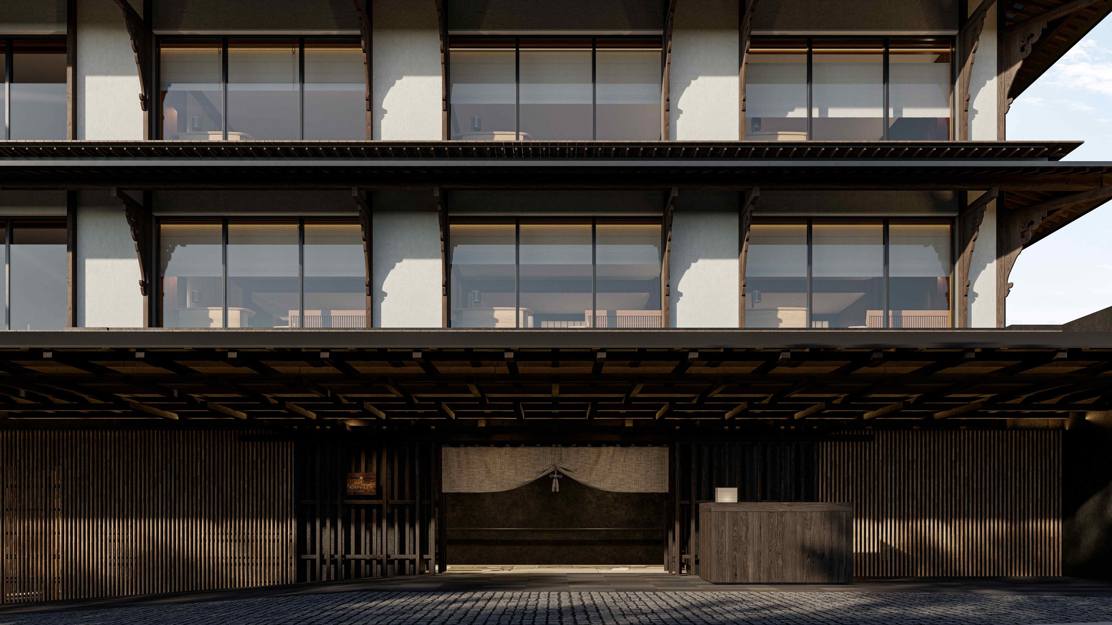 2026年春に開業するカペラ京都は、歴史ある宮川町に位置し、鴨川まで徒歩圏内、800年の歴史を誇る禅寺・建仁寺を正面に臨む、京都でも屈指の希少な立地を誇ります。隈研吾建築都市設計事務所が手掛けた低層の造りの建築は、祇園の路地裏の趣を感じさせながらも、伝統的な意匠を現代的に再解釈し、京都の文化をより親密に感じられる空間へと昇華しています。宮川町歌舞練場の再建に並行して建設された本ホテルでは、中庭に劇場建築の意匠である唐破風屋根を冠した屋外パフォーマンス空間を設け、小学校跡地に敬意を表し、大切に守られてきた桜の木を移植。89室の客室は、カペラの特徴である深くパーソナルな滞在を反映し、1200年の歴史を誇る京都の伝統に根ざしています。6つのスイートでは客室で楽しめる天然温泉を用意し、またアウリガスパでは、日本の伝統と現代的ウェルネスを融合させたプログラムを提供します。シグネチャーレストラン、和食レストラン、フレンチブラッスリ-での美食体験に加え、館内の多彩な現代アートコレクションや文化体験を通じて、今も息づく地域の伝統を称えます。