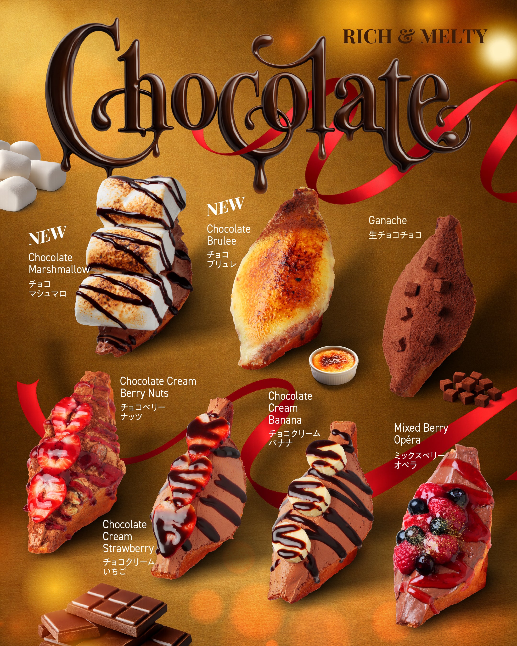 新作『チョコマシュマロ』『チョコブリュレ』をはじめ、既存のチョコレート系メニューも加え、