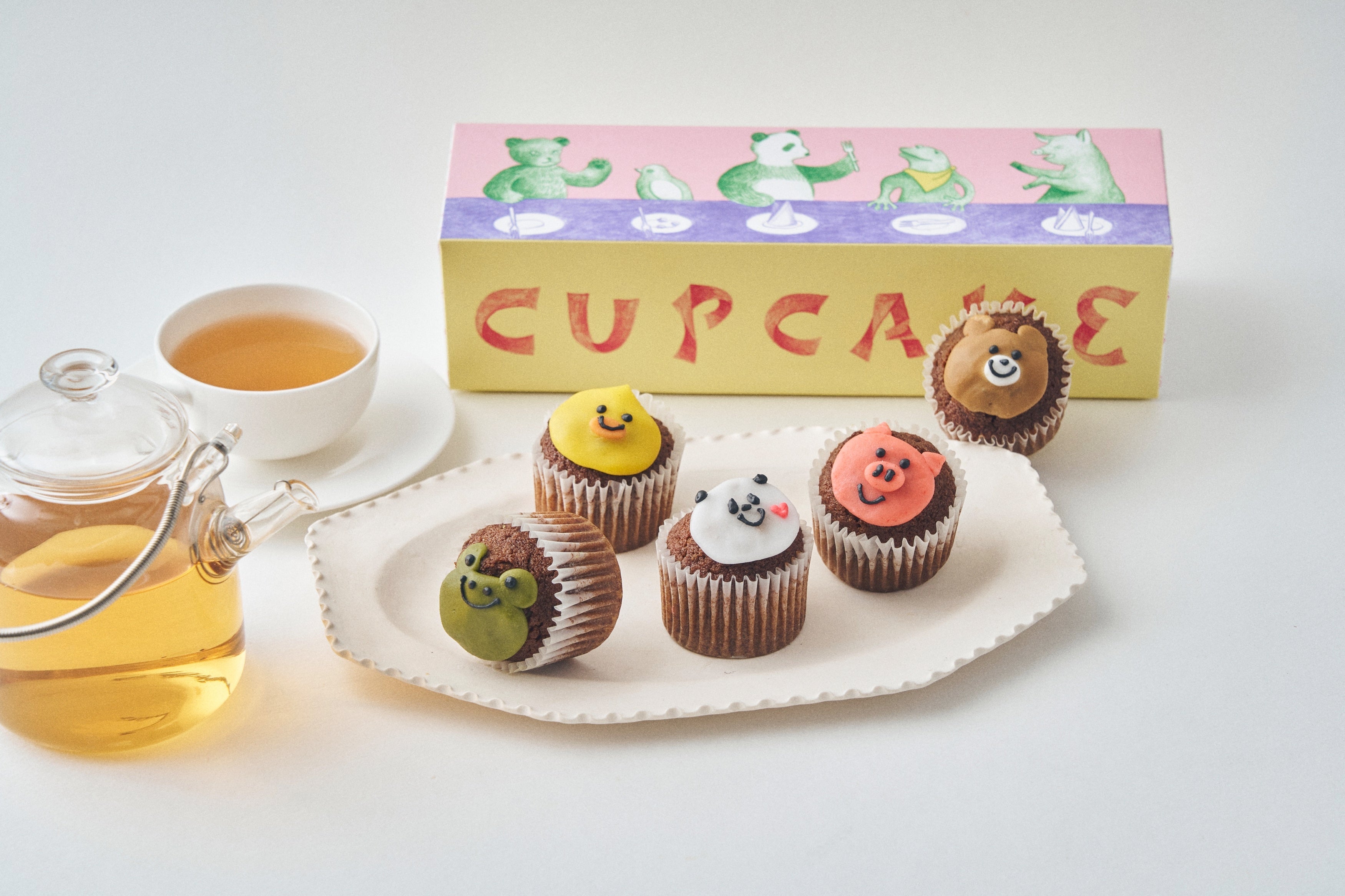 手土産人気No.1「ベイクドZOO カップケーキ」をバレンタイン仕様にアレンジ。濃厚なカカオケーキに5種のどうぶつたちをアイシング。パンダの顔には、小さなハートをあしらいました。