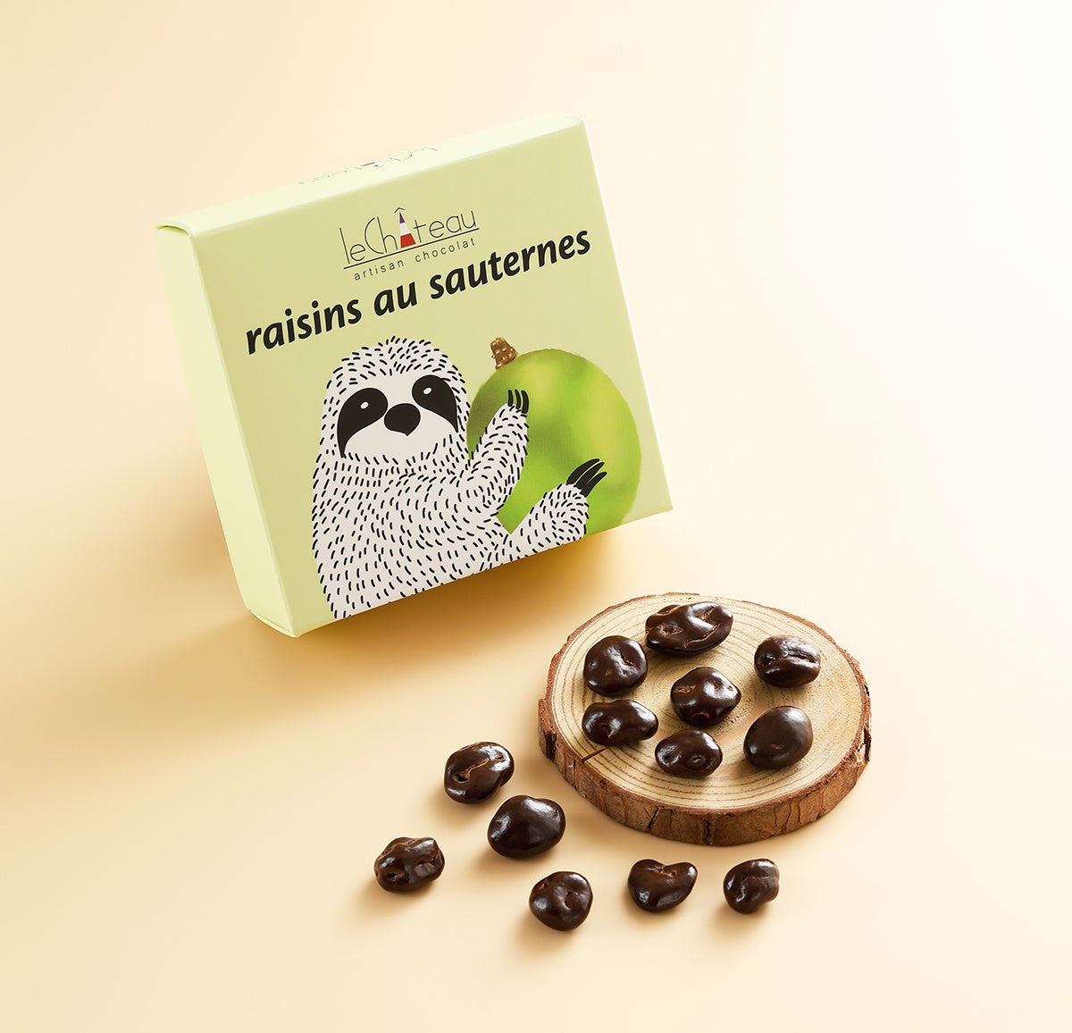 ソーテルヌ地区の歴史あるワイナリーが造る、ボルドー産の貴腐ワインにじっくりと漬け込んだレーズンを、カカオ70%のダークショコラで包み込みました。
