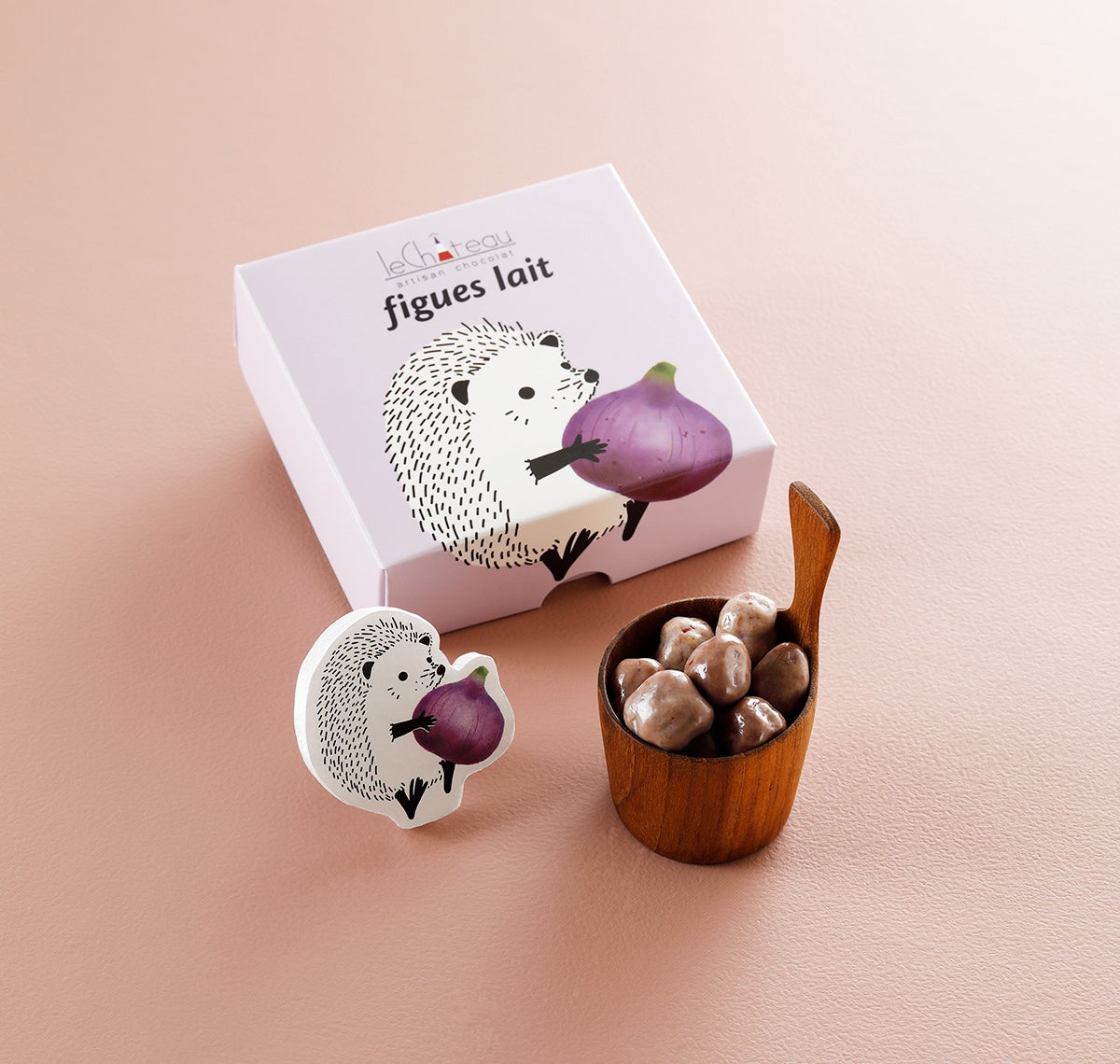 イチジク特有の「プチプチ」とした種の食感。銅釜で丁寧に仕上げたショコラと重なり合い、甘みが極限まで凝縮されたセミドライのイチジクを、口どけ滑らかなショコラで優しく包み込み、噛むほどに多幸感が広がるひと粒です。