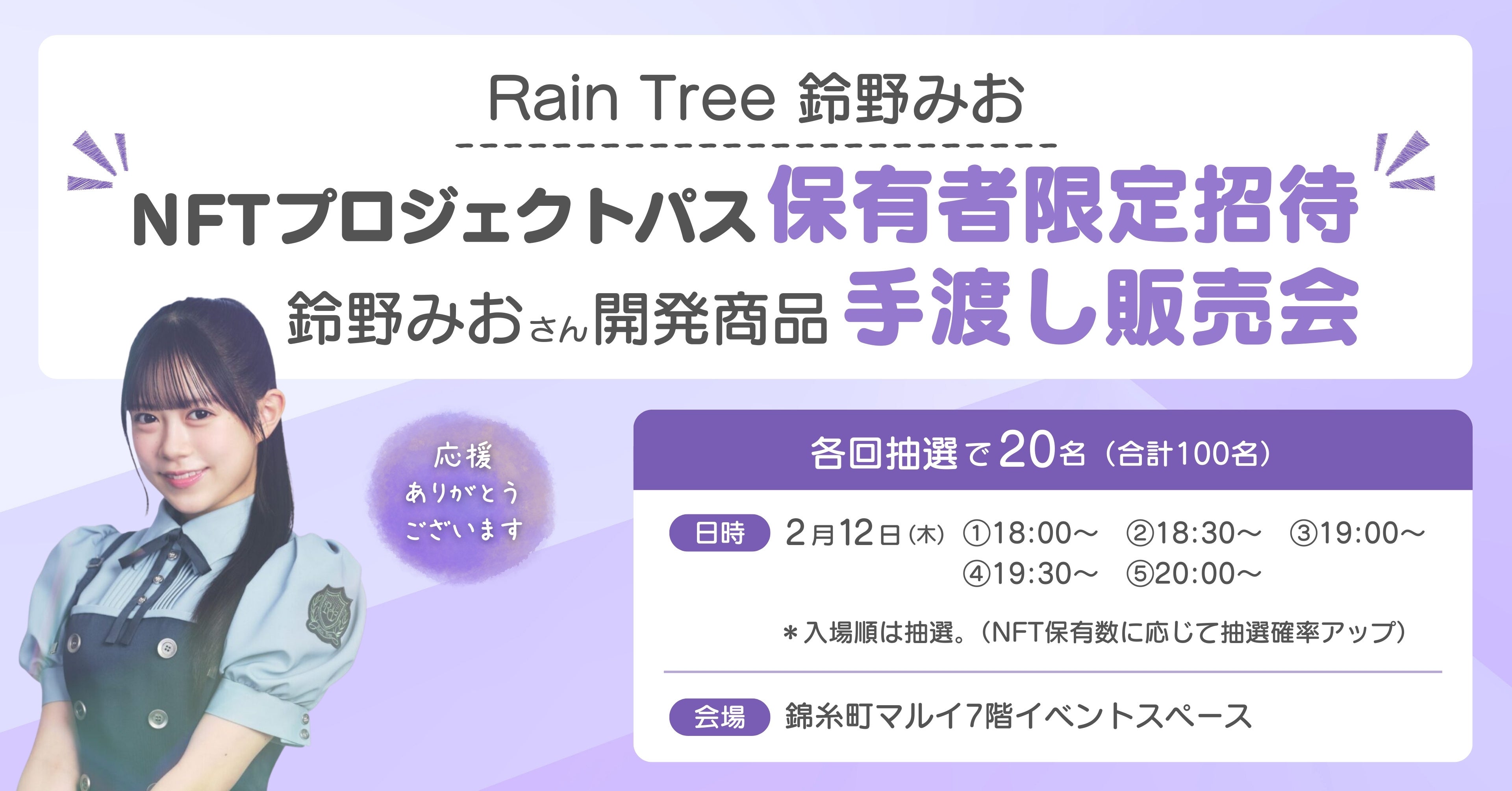 2月12日(木)18:00~21:00 NFT保有者限定・Rain Tree鈴野みお手渡し販売会