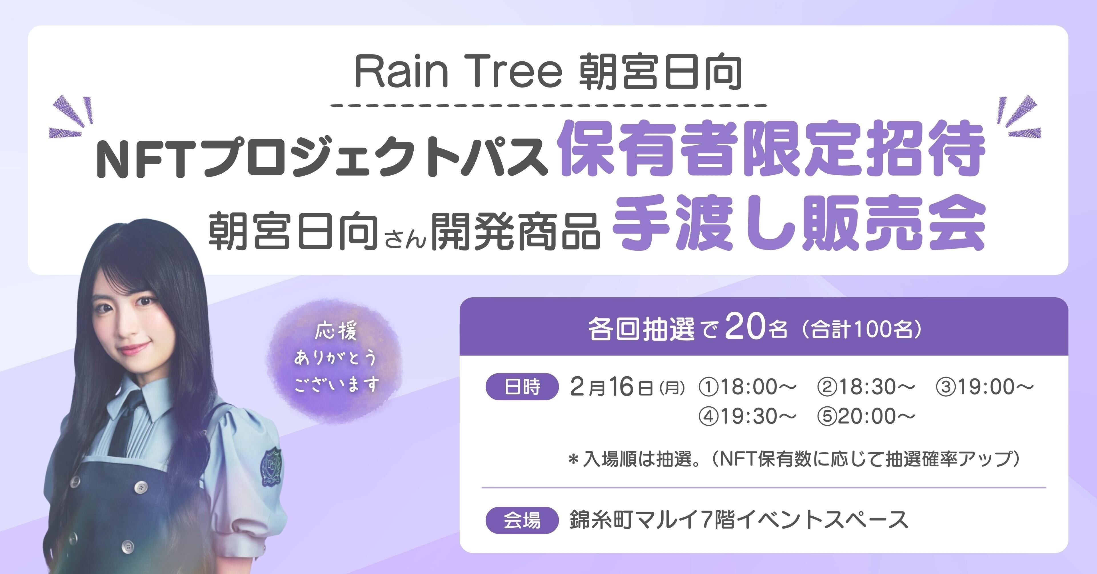 2月17日(火)18:00~21:00 NFT保有者限定・Rain Tree 朝宮日向手渡し販売会