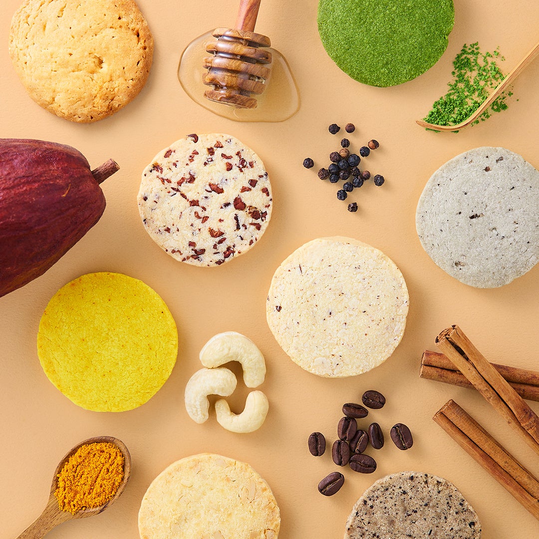 全8種のラインナップの中から、甘み豊かなインドネシア産カシューナッツとスラウェシ島のカカオニブを使用した人気の2種のクッキーをお届けします。