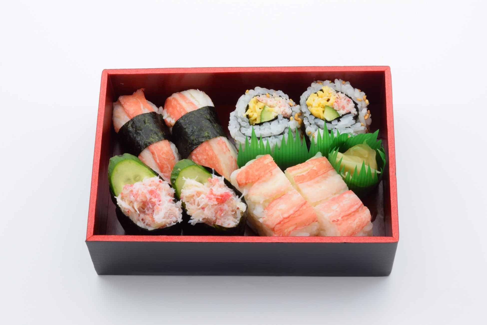 かにの押寿司、にぎり、中巻、軍艦の4種の詰合せ。多彩な味わいが楽しめる贅沢な一折です。