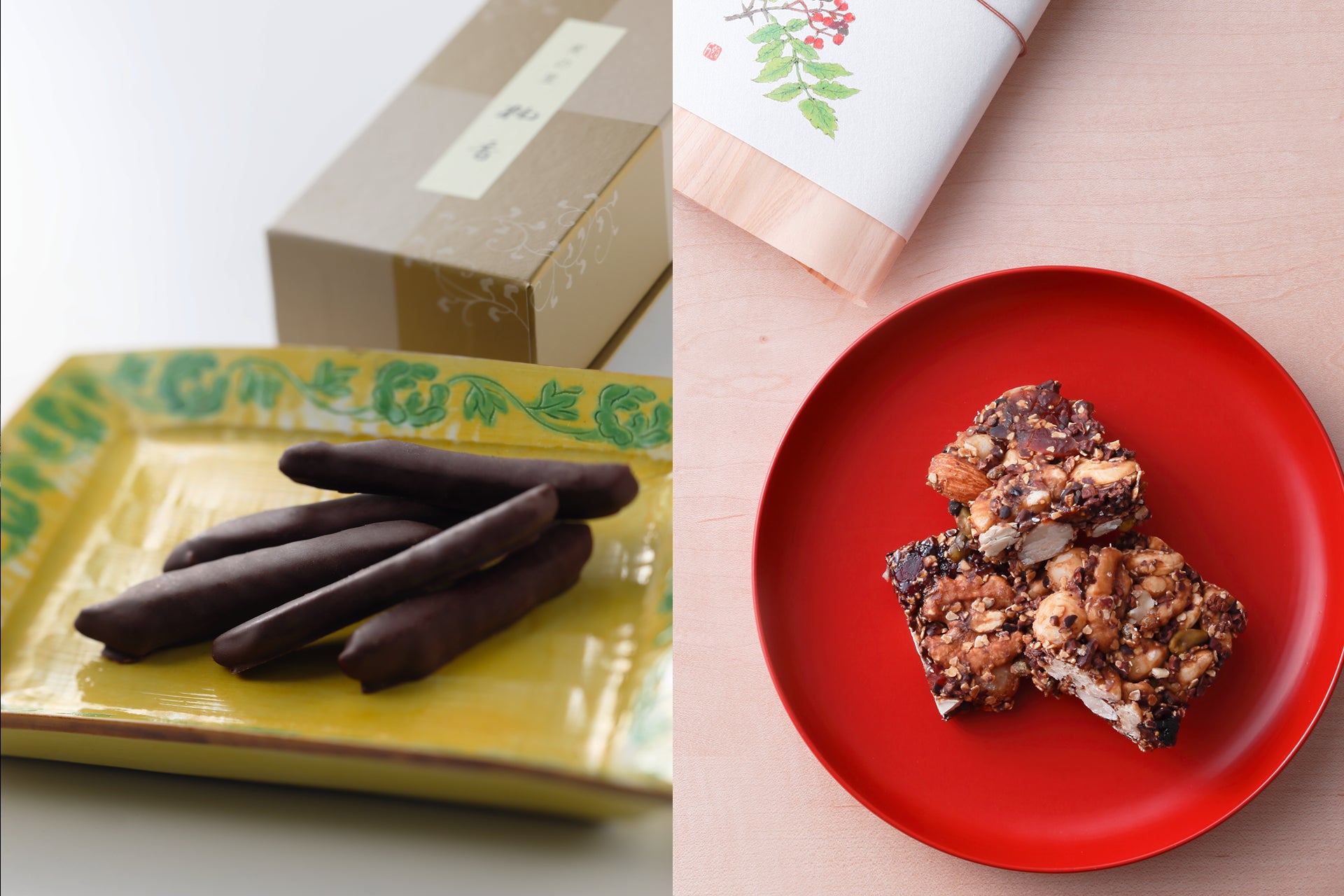 小さく切り分けて、少しずつ。コーヒーやワイン、食後のひとときとともに、ゆっくりと香りの変化を楽しんでいただきたい和久傳のチョコレート菓子です。
