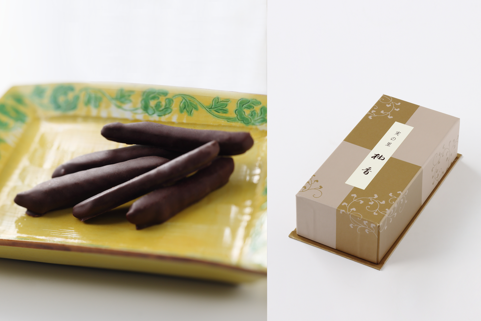 柚子特有のほのかな苦味と爽やかな香り、チョコレートのやさしいコクが調和し、後味は驚くほど軽やかです。お茶の時間にはもちろん、食後や夜のひと息に。香りを楽しむように、余韻を味わっていただきたい一品です。