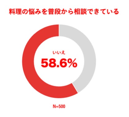 さらに、58.6%が料理の悩みを誰にも相談できていないことも明らかになりました。子育てや仕事の悩みは共有されやすい一方で、料理の悩みは「たいしたことではない」と受け止められやすく、一人で抱え込まれがちです。