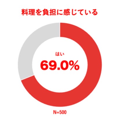 当社が2025年3月に実施した調査(料理をつくる女性500名対象)では、69.0%が料理を「負担に感じている」、55.8%が「料理を楽しめていない」と回答しました。