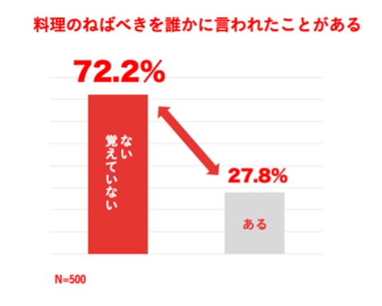 「料理のねばべき」を”実際に誰かに言われた”と感じている人は27.8%にとどまり、72.2%が自分自身で抱えているルールであることが分かりました。