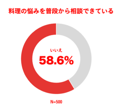 さらに、58.6%が料理の悩みを誰にも相談できていないことも明らかになりました。子育てや仕事の悩みは共有されやすい一方で、料理の悩みは「たいしたことではない」と受け止められやすく、一人で抱え込まれがちです。