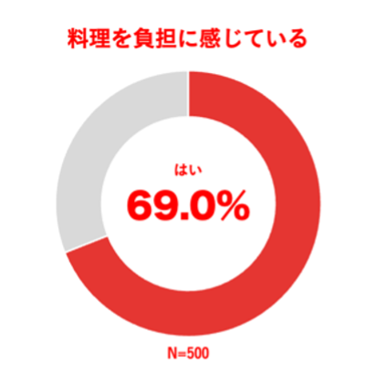 当社が2025年3月に実施した調査(料理をつくる女性500名対象)では、69.0%が料理を「負担に感じている」、55.8%が「料理を楽しめていない」と回答しました。